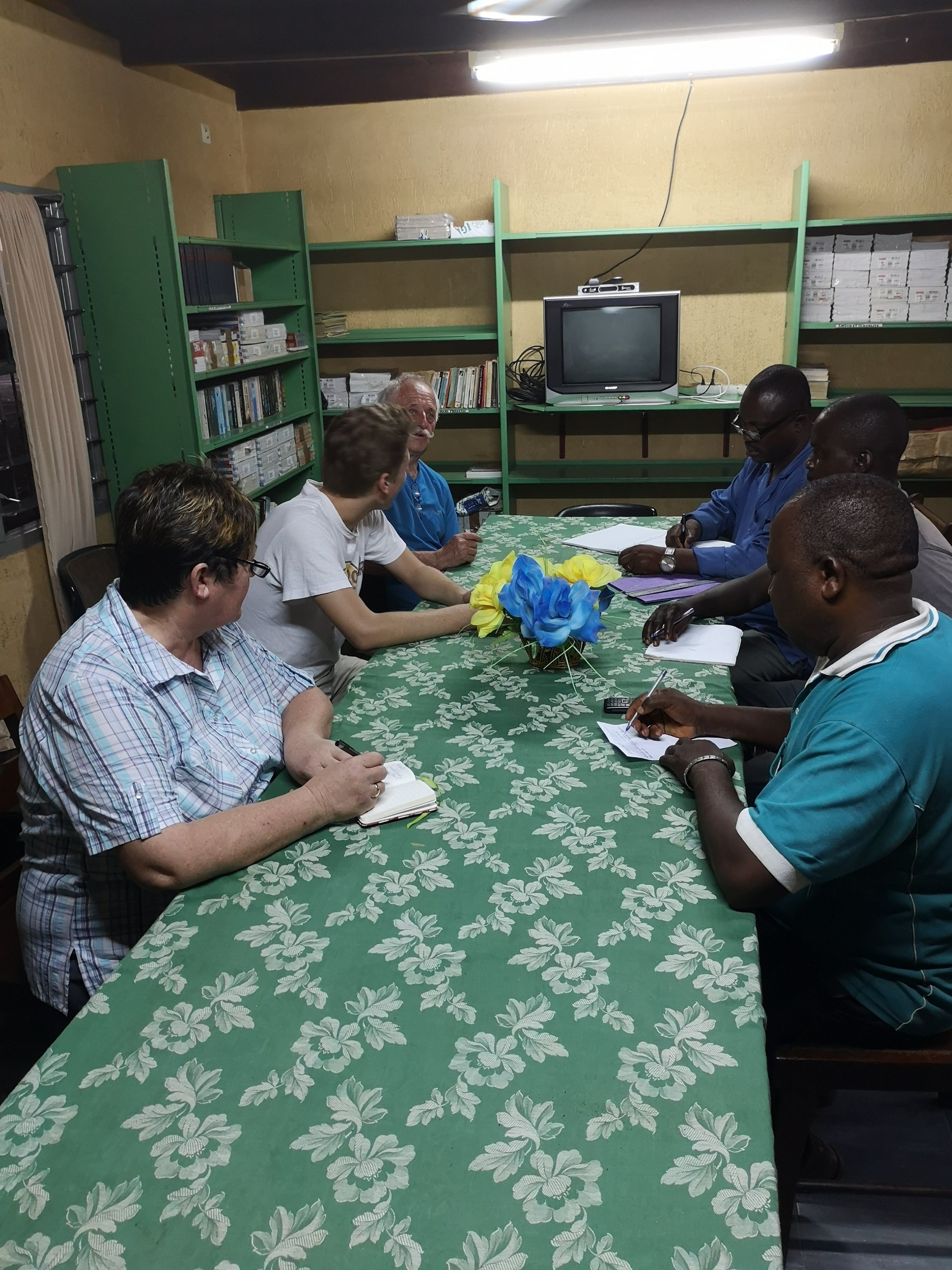 Wir haben einen Termin im Hopital Solidarite. Das Dispesarie in Kpalime unterstützen wir schon seit etwa 20 Jahren mit Hilfsgütern aus dem Container und seit 2008 unterstützen wir Mittellose mit einem Fond. Es kommt oft vor, dass Patienten nach Hause geschickt werden müssen oder nur eine Minimalbehandlung bekommen, weil sie kein Geld für eine ausreichende Behandlung haben. Zusätzlich zu den normalen Patienten wurden im letzten Jahr 61 Patienten von uns und 33 aus einem Fond des Solidarite unterstützt. Wir werden von etwa 20 Mitarbeitern empfangen die sich vorstellen.
