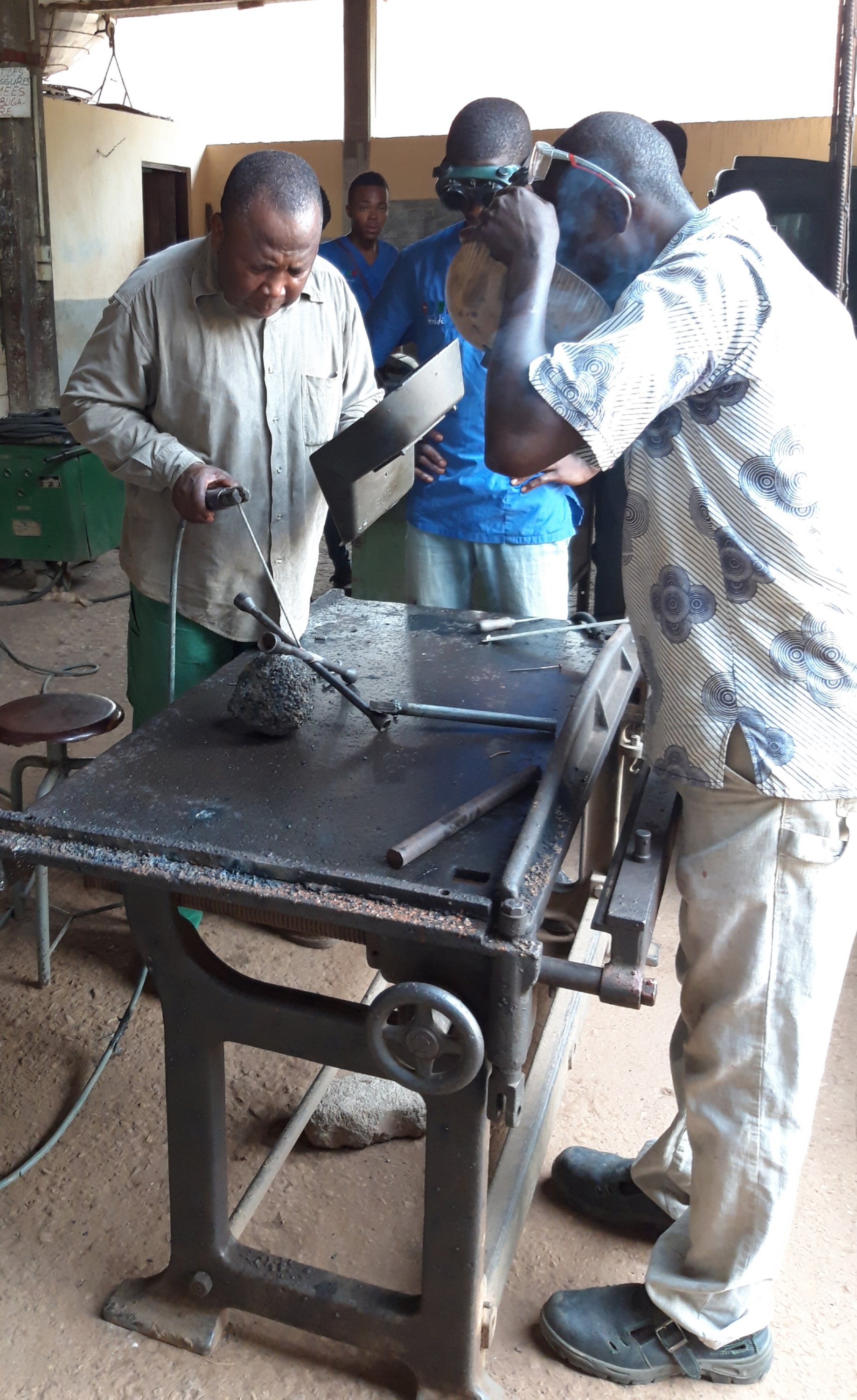 Traditionell wird zunächst ein Huhn gestochen und das Blut auf dem Weg verspritzt, darauf wird Mehl verstreut und wir müssen alle darüber gehen. Der Fetisch ist für die Ahnen, die dann das Bauwerk, seine Nutzer und auch die Erbauer schützen soll.