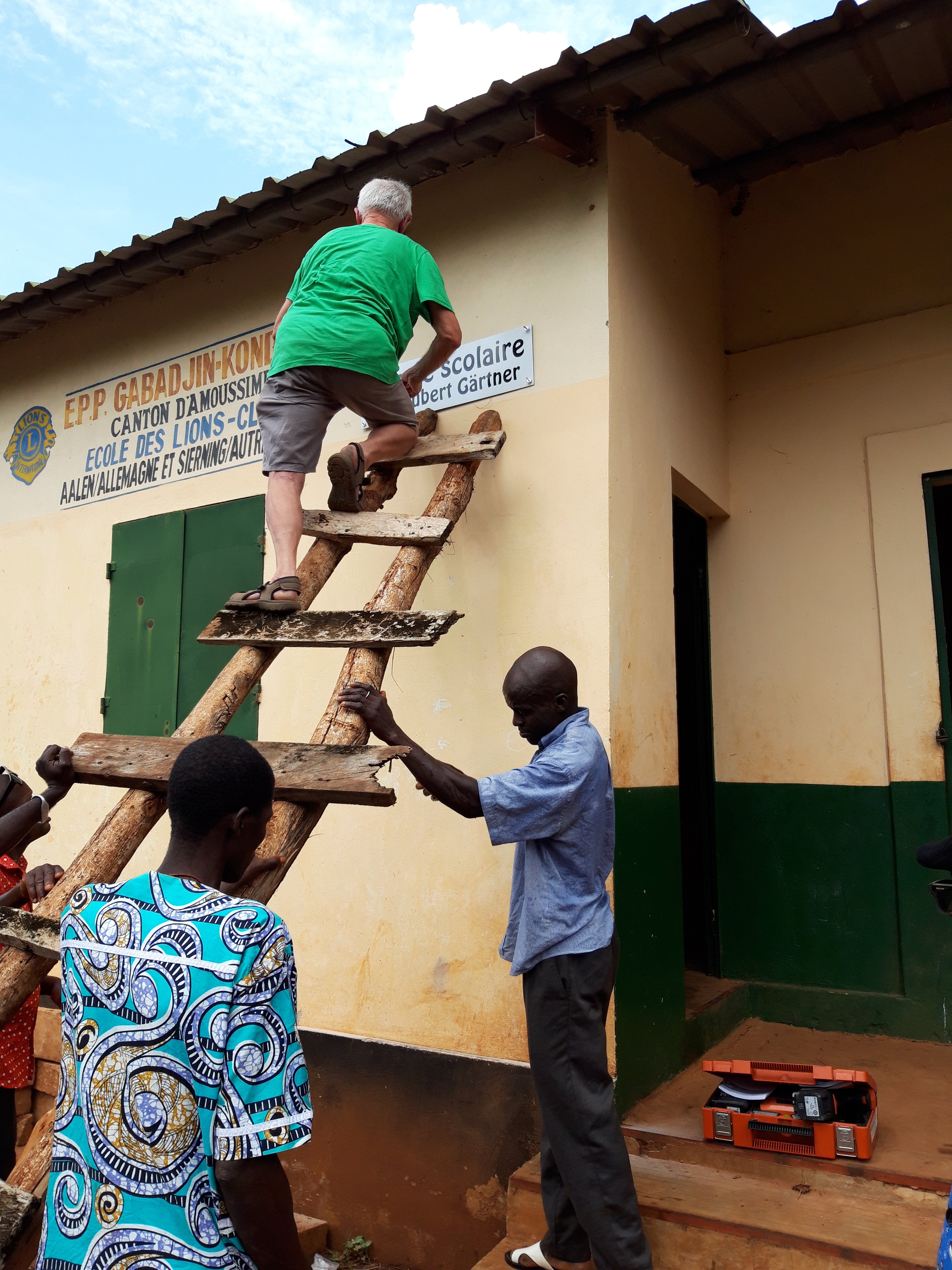 Dort haben die Lions Clubs aus Aalen und Sierning in Österreich in den letzten Jahren eine Schule, ein Dispensaire und eine solarbetriebene Wasserversorgung erbaut. Heute wird ein Kindergarten eingeweiht. Mit Musik und Tamtam werden wir von tanzenden Menschen empfangen.