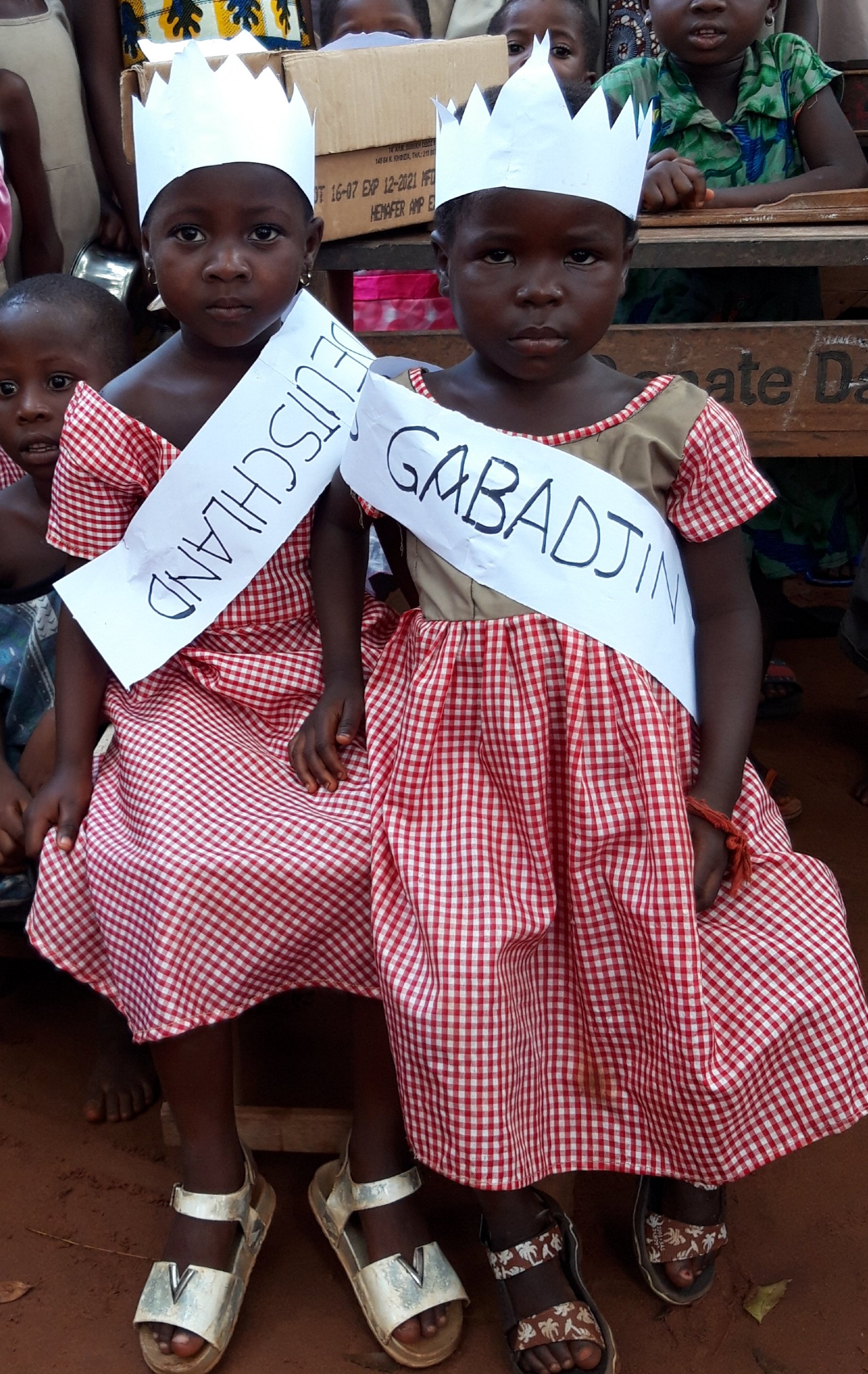 Wir amüsieren uns köstlich zwei der kleinen Mädchen sind mit Krone und Schärpe ausgestattet mit der Beschriftung Miss Deutschland und Miss Gabadjin. Die Kinder singen und tanzen und singen sogar zum Geburtstag viel Glück auf Deutsch.