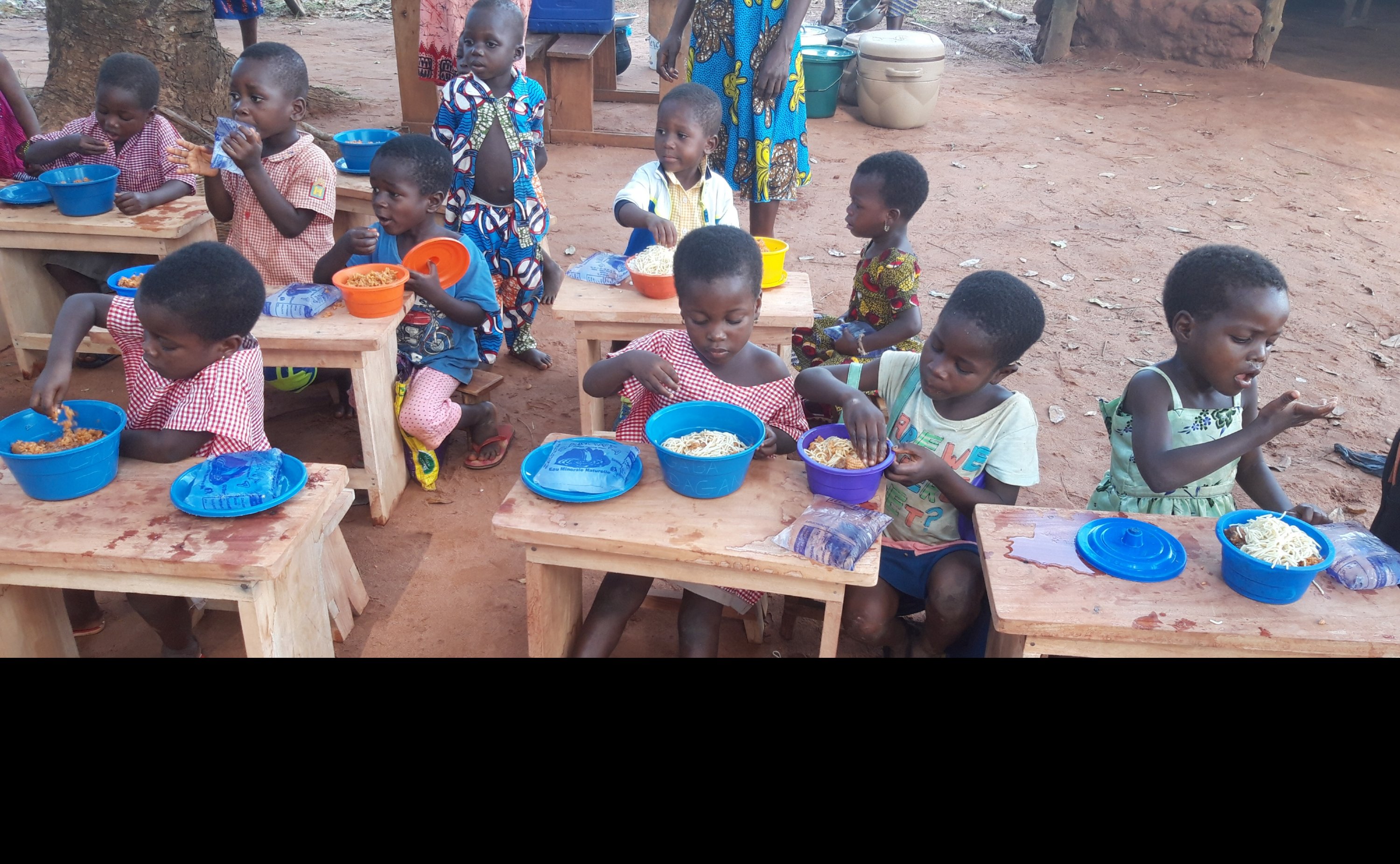 Ein weiterer Höhepunkt der Veranstaltung ist, dass alle Kinder ein warmes Essen und ein Wasserbeutel, sowie zum Nachtisch eine Orange bekommen. Die Begeisterung der Kinder ist unbeschreiblich.