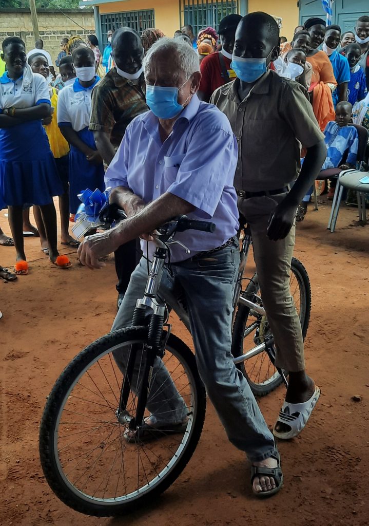 Seit einigen Jahren wird jedes Jahr zu der Feier eine Art Tombola veranstaltet, bei der diesmal 5 Fahrräder und 2 Nähmaschinen aus dem Container verlost wurden. Die Gewinner erhalten heute ihre Preise und freuen sich natürlich sehr.