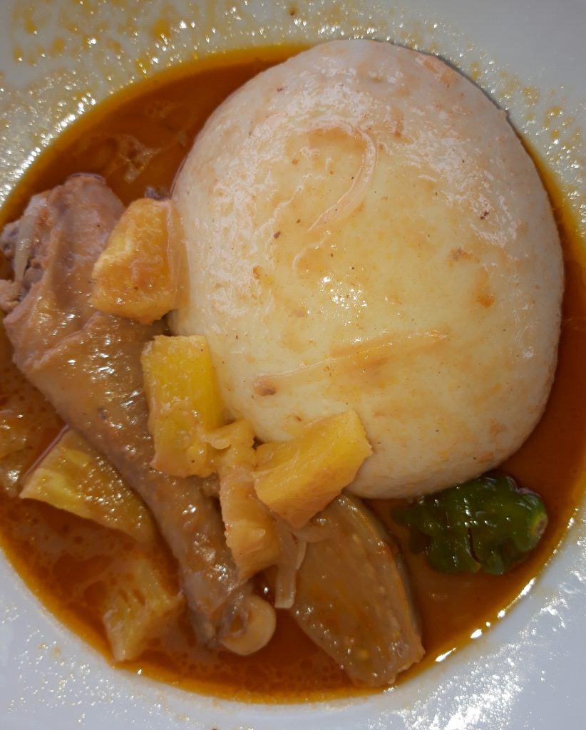 Im Macumba werden traditionelle afrikanische Gerichte und die europäische Küche angeboten. Sehr anstrengend ist das FuFu stampfen. Dazu wird die Yamswurzel geschält, grob zerhackt und gekocht. Danach werden die weich gekochten Stücke so lange zerstampft bis eine zähe Masse entsteht, die zu Klößen geformt werden. Dazu gibt es dann eine Soße, die in der Regel sehr scharf ist, aber sehr lecker schmeckt.