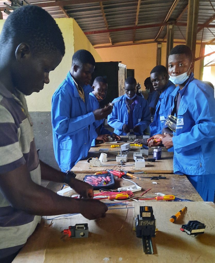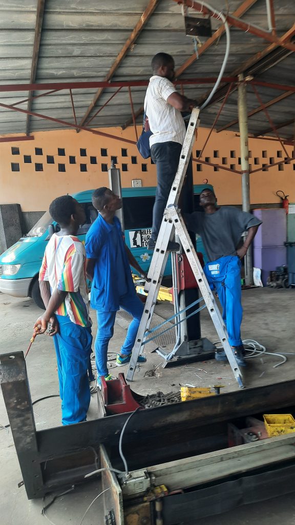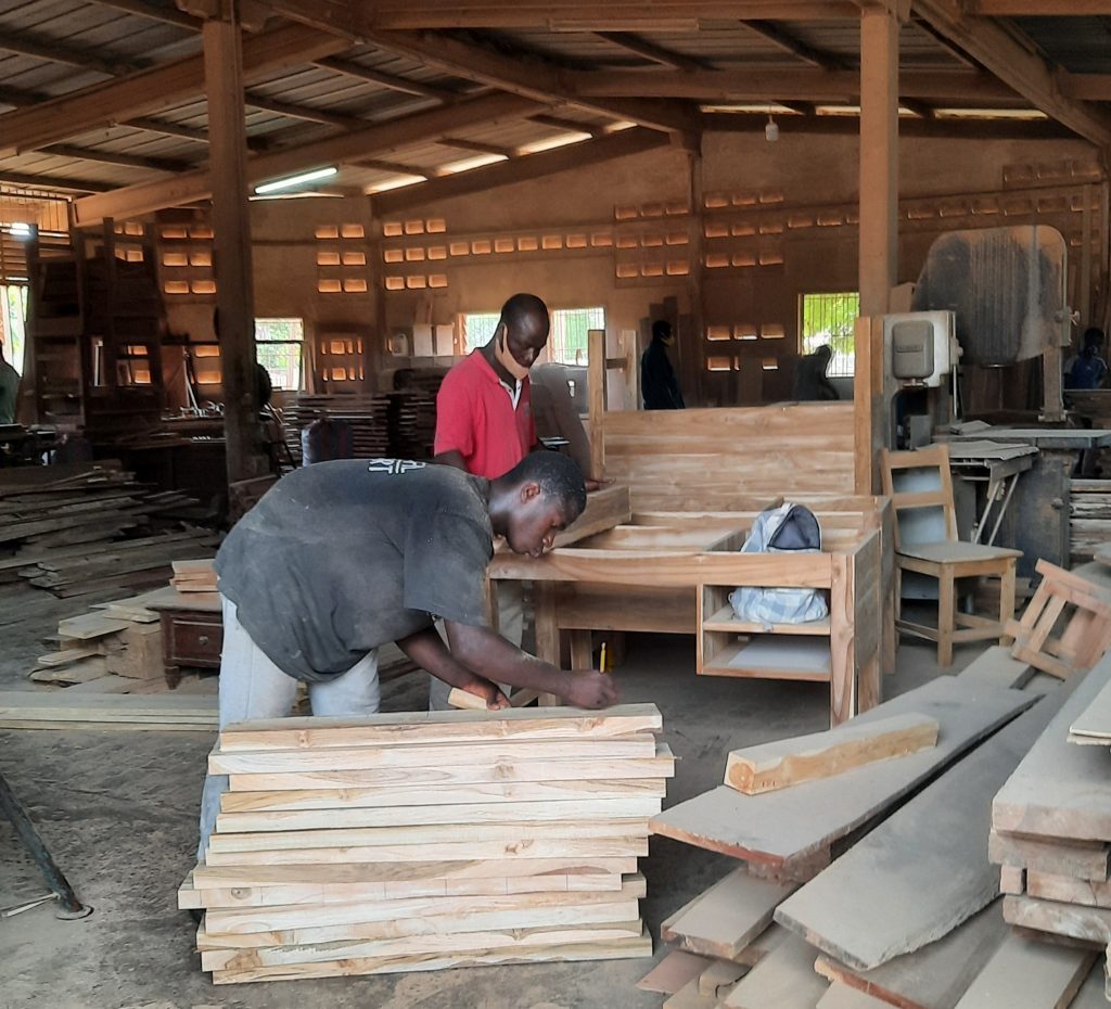In den einzelnen Werkstätten herrscht wie immer Betriebsamkeit. Ein Teil der Aprentis ist auf verschiedenen Baustellen. So z.B.in Alenou, ganz im Süden Togos, wo gerade eine Schule gebaut wird.