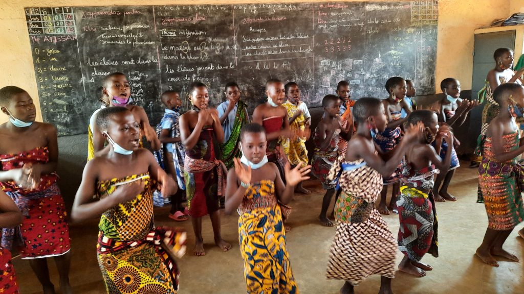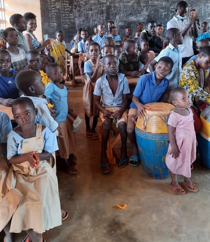 Wir versprechen uns zu Hause Gedanken zu machen und uns Möglichkeiten für eine Unterstützung zu überlegen. Die Kinder der Schule überraschen uns noch mit afrikanischen Tänzen und viel Tamtam, beovor wir weiter fahren.