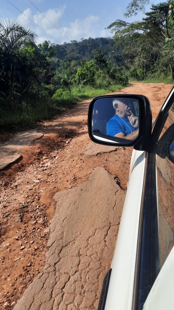 Von Julie und ihrer Mama werden wir dann wieder bekocht … es gibt leckere Yamsfriten mit Brochetten und die oberleckere, scharfe Tomatensoße und wir genießen das gute afrikanische Essen. Gemütlich unterhalten wir uns noch eine Weile in der Payotte. Wegen der sehr schlechten Straßen wollen wir unbedingt vor Einbruch der Dunkelheit in’s Kloster zurückfahren. Zuvor verabschieden wir uns von Edith und Janny, die bis Ende Januar in ihrem Haus in Elavagnion bleiben.