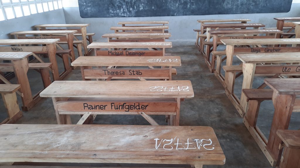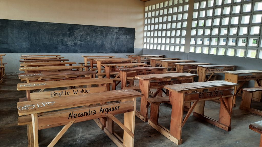 In Notse wurde ein Lycee (Gymnasium) gebaut. Finanziert wurd die Schule von Mitarbeitern des Landratsamtes vom Ostalbkreis. Viele Mitarbeiter haben dafür ihre Überstunden gespendet. Dabei kamen sage und schreibe, stolze 68.000,- Euro zusammen. Die Schule mit 4 Klassenräumen und einer WC Anlage hat 60.000,- Euro gekostet. Die restlichen 8000,- Euro wurden als Zuschuss für den Bau der Schneiderei verwendet, die wir im Juli an das Ausbildungszentrum ABCN übergeben haben.