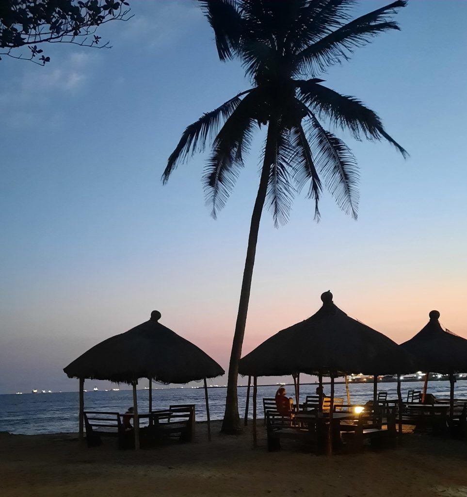 Bei der extremen Hitze sind wir froh, als wir ins klimatisierte Auto steigen und die Fahrt in Richtung Lome fortsetzen können. Leider müssen wir diesen Umweg fahren, da wir für unsere Heimreise einen PCR Test benötigen. Daher müssen wir heute nochmal in Lome übernachten. Die bürokratischen Hürden in Bezug auf die Coronaverordnung kosten uns vor der Einreise und vor der Heimreise Geld und Zeit. Das ganze hat heute einen Vorteil – wir können eine schönen Abend inkl.Sonnenuntergang am Meer verbringen.