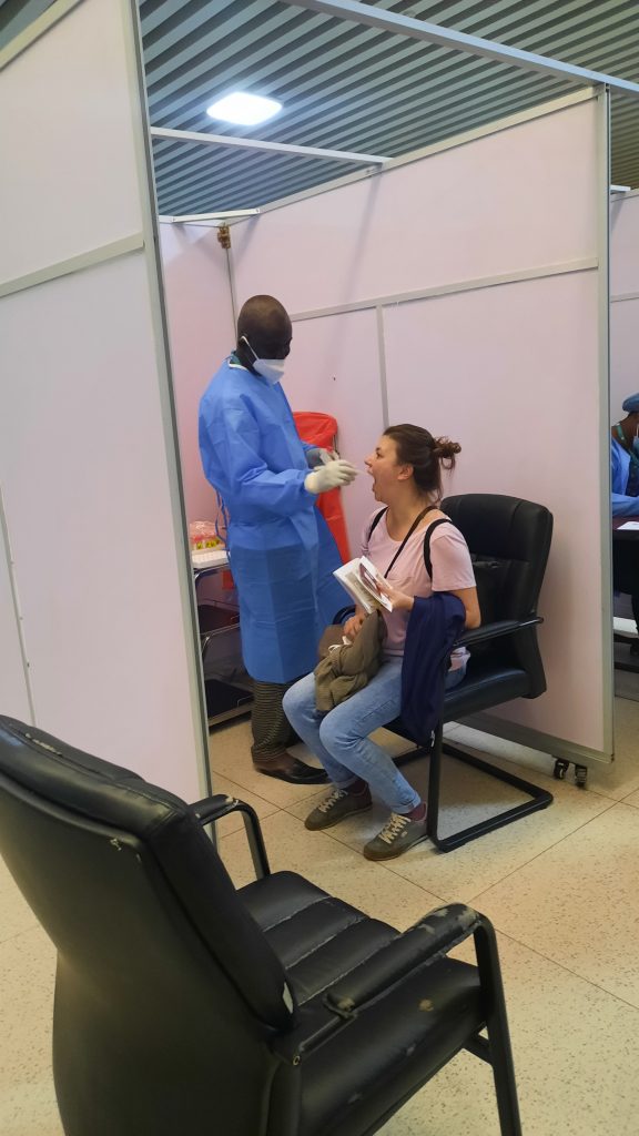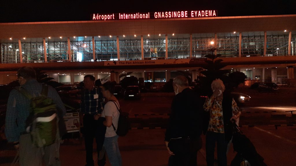 Mit etwas Verspätung sind wir kurz vor 19.00 Uhr in Lome gelandet. Die Zwischenlandung in Accra zog sich auch sehr in die Länge. Immer wieder wurden die Passagiere gezählt. Am Schluß wurden alle Boardingkarten kontrolliert und da stellte sich heraus, daß Edith u. Janny nur bis Accra gebucht waren. Wir konnten aber gut überzeugen, dass die zwei zu uns gehören und nicht aussteigen mussten. Die Kotrollen von Pässen, Corona App installieren und PCR Test liefen reibungslos.