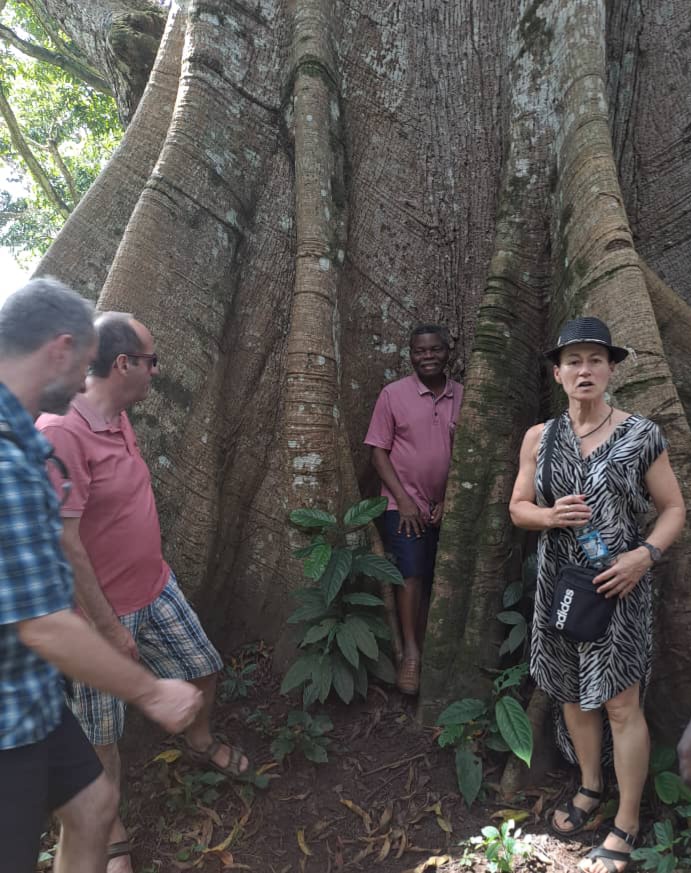 Die Heimreiser machen mit Leon, Holali und Boris noch einen Ausflug zur Missa Höh. Der Name entstand in der Kolonialzeit. Der deutsche General hatte eine Geliebte, die Missa Esterhazy hieß. Ihr zu Ehren nannte er den Berg Missa Höh. Dort befindet sich ein Krankenhausgebäude aus der Kolonialzeit. Deutsche Soldaten, die in Togo stationiert waren kam auf die Missa Höh um sich von den Tropenkrankheiten zu erholen, weil dort das Klima wesentlich angenehmer ist als im Landesinneren oder in Lome. Auf der Strecke und auch oben auf der Höhe gibt es noch sehr alte Bäume, die ebenfalls noch aus der Kolonialzeit stammen. Auf der Hochfläche befinden sich Aufforstungsflächen, deren Pflanzung und Pflege von Hilfe für Togo finanziert wird.