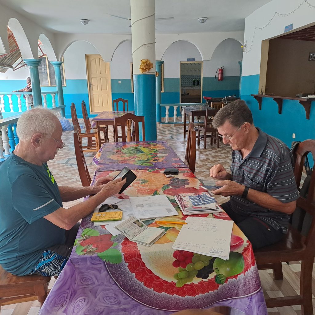 Samstag, 3.12.2022 – heute ist unser letzter Tag in Kpalime. Schon kurz nach sieben versuche ich wieder die Ausreiseformalitäten am Handy zu erledigen …. ich verzweifle fast…. Roman hilft mir dann …. das Programm ist schlecht aufgebaut…. so wird z.B. das Einreisedatum agefragt, man kann aber nur 1 Tag zurück eingeben…das richtige Datum nimmt das Programm nicht an. Man muss den Impfpass mit den Covidimpfungen abfotografieren dann nimmt das Programm das Foto nicht an, dann stürzt wieder alles ab… usw. Es dauert 2 Stunden bis alles geklappt hat. Roman geht ins ABCN und läßt für uns die Daten ausdrucken….