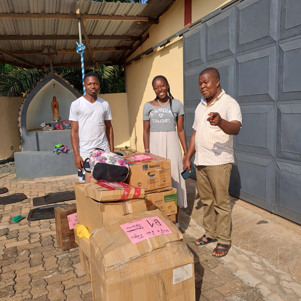 Zurück im ABCN sind Roman und Anton nochmal mit Leon, Kokou Abousi und Arafat im Büro, während ich mit Victorin und Kossi nochmal im Containerlager Hilfsgüter sortiere und Victorin gleich die weitere Verteilung an die Bestimmungsorte organisiert. Ein Fahrer vom ABCN fährt gleich einige Pakete aus. Wir richten nochmal Sachen für die Behinderteneinrichtung Envol. Firdaws wird am Montag vorbeikommen und die Sachen holen. Eigentlich wollten wir uns noch mit Pfr. George treffen, der unter anderem mehrere blinde Jugendliche betreut. Er ist beruflich sehr eingespannt und wir hatten in den letzten Tagen soviele Termine, das wir es nicht geschafft haben uns zu treffen. Wir werden in den nächsten Tagen jemanden beauftragen, um die Jugendlichen und Pfr. George zu besuchen.