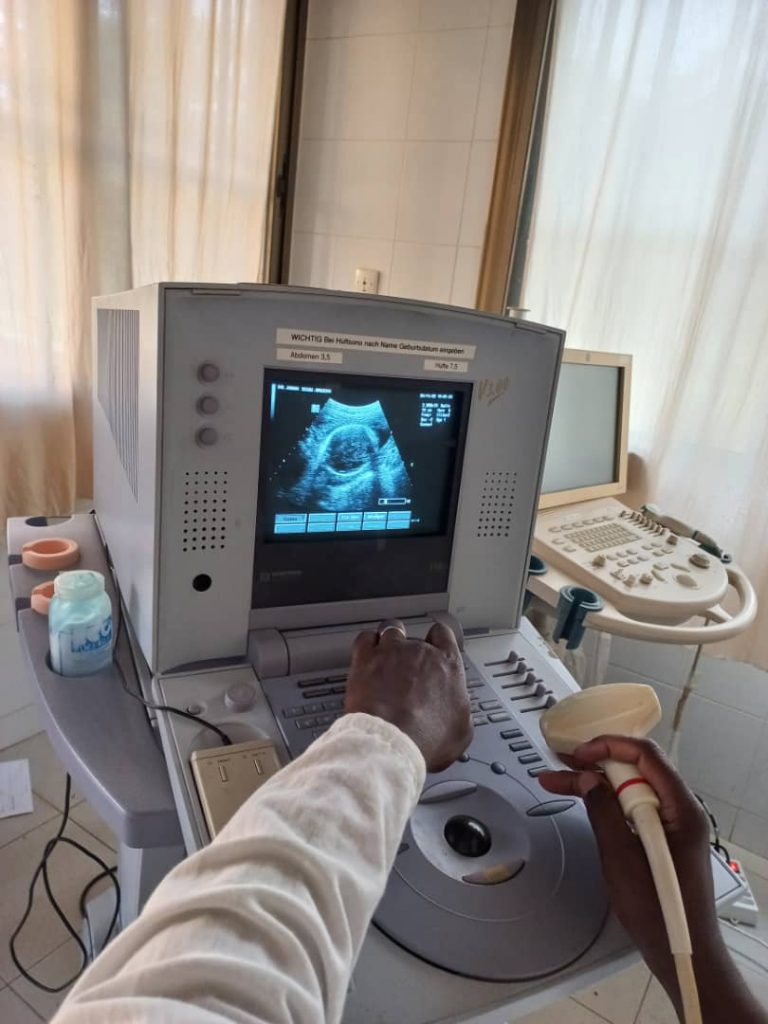 Leider kann uns heute nur Schwester Patricia empfangen, die anderen 3 Schwestern und 3 Postulantinen liegen alle im Bett. Viele Menschen sind zur Zeit erkältet und da es immer noch stark regnet gibt es viele Moskitos und somit viele Menschen die an Malaria erkrankt sind. Mit einem der letzten Container kam ein Ultraschallgerät aus einer Bettringer Arztpraxis nach Togo. Das Gerät wäre sehr gut und würde auch sehr gute Fotos machen. Problem wäre, dass das Gerät in deutscher Sprache eingestellt ist. Es gibt sicher die Möglichkeit, das Gerät auf die französische Sprache um zu stellen. Dazu benötigten die Schwestern aber eine Betriebsanleitung oder einen Code. Ich verspreche mich darum zu kümmern und habe sofort mit der Praxis, aus der wir das Gerät bekommen haben Kontakt aufgenommen.Sie antworten mir sofort, das sie recherchieren werden …. das ist super, darum aus Togo ein herzliches Agbekaka.