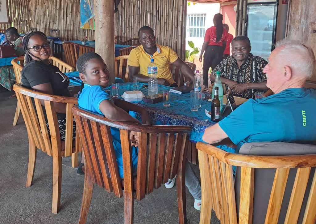 Holalie, ihr Mann Boris und ihr Sohn Simeon kommen zu uns ins Hotel und werden uns zum Flughafen fahren. Ein letztes Mal sitzen wir zusammen und wir bedanken uns bei Leon für seine Gastfreundschaft. Victorin wünschen wir gute Besserung. Leon bedankt sich bei uns und allen Reiseteilnehmern, aber auch bei allen, die in Deutschland das Rad mit am laufen halten. Da am Samstag unser 58. Container beladen wird, hat er mitbekommen, dass ich das eine oder andere organisiere und zu Hause Leute sind die tolles Engagement zeigen und auch trotz unserer Abwesenheit einiges geleistet wird. So wird z.B. schon unser Weihnachtsbrief vorbereitet sodass wir ihn in der kommenden Woche auch gleich verschicken können.