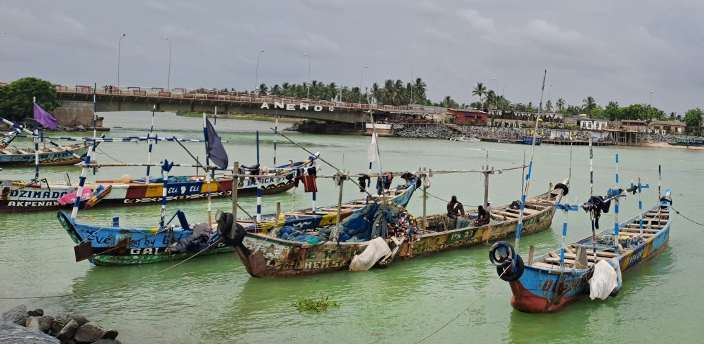 Faßt pünktlich geht unsere Reise weiter. Wir fahren zunächst nach Anecho. Die achtgrößte Stadt Togos ist 42 km von Lome entfernt und liegt im Südosten unmittelbar an der Grenze zu Benin. In der Lagune zwischen dem TogoLac und dem Atlantik sind die Kolonialmächte mit ihren Schiffen angekommen. Anecho war der portugisische Sklavenmarkt. 1885 wurde die Stadt den Deutschen zugeschlagen und dort war dann die deutsche Zentralverwaltung der Togokolonie. Heute lebt die Bevölkerung hauptsächlich von der Landwirtschaft, dem Fischfang und dem Tourismus, was auch für uns der Grund ist einen kurzen Stopp an der schönen Bucht einzulegen.
