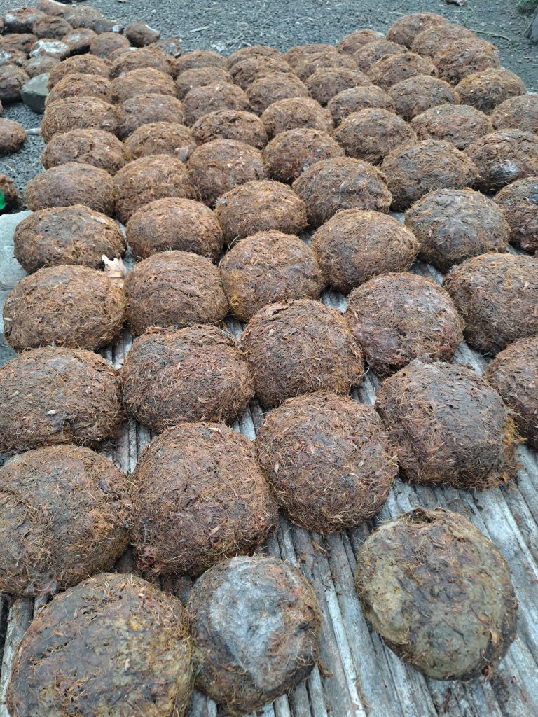 Die Fasermasse wird zu Laiben geformt und getrocknet. Die Frauen verkaufen sie als Anzünder für das Kochfeuer.