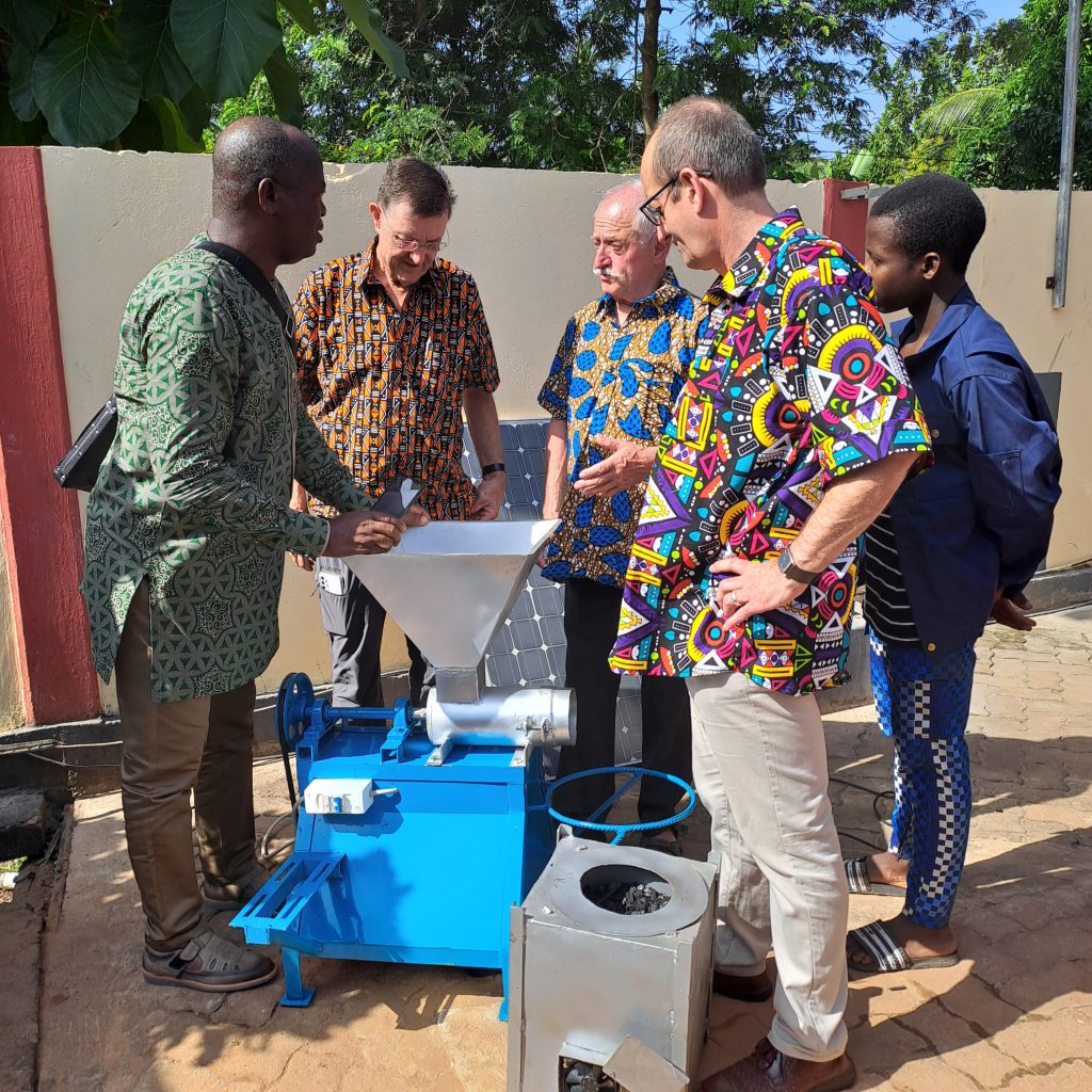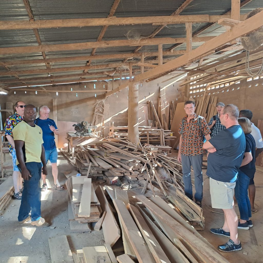 Wir besuchen verschiedene kleine Handwerker, die Auszubildende im ABCN waren und sich selbstständig gemacht haben. Schon beim Essen war ein Schreiner aus Lome da, der bis Ende der 90 iger Jahre nach seiner Ausbildung noch im ABCN gearbeitet hat und sich dann in Lome selbstständig gemacht hat. Er meinte die Anfangszeit sei sehr hart gewesen. Er habe sich aber immer gesagt, irgendwann werde ich einen Mercedes fahren und heute sei er mit so einem Auot hier. Sein Sohn hat Bauingenieur studiert und gemeinsam entwerfen und bauen sie mit ihren 16 Mitarbeitern große Bauwerke in Lome.