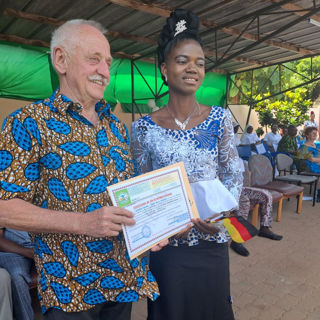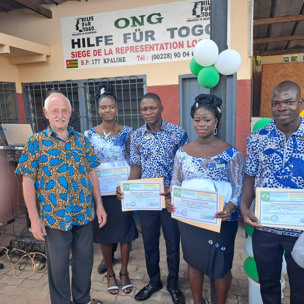 In diesem Jahr haben die ersten 4 Lehrlinge aus der Region Kara ihre Ausbildung abgeschlossen ( 2 Schneiderinnen, 1 Schreiner u. 1 Automechaniker).