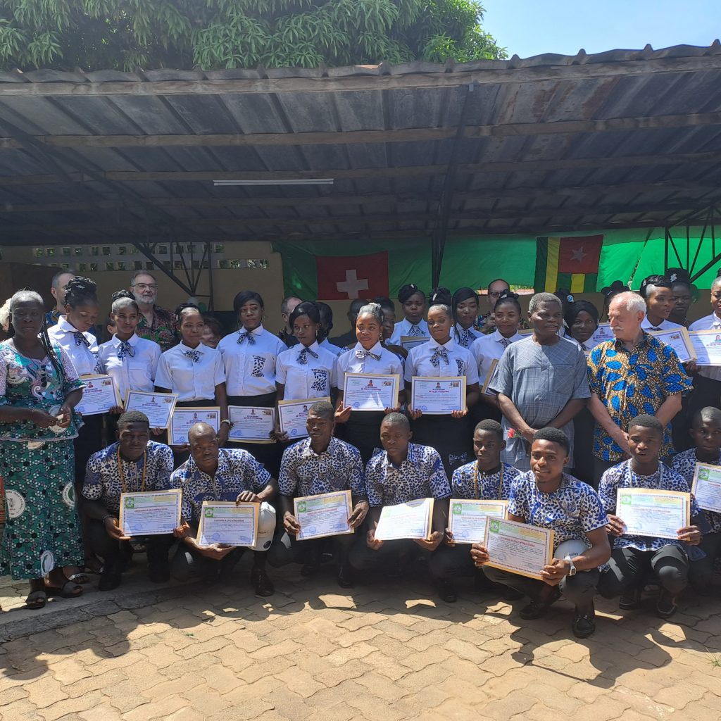 In vielen Reden vom ABCN Chef Leon, dem Bürgermeister, einem Vertreter aus dem Ministerium und dem Prefäkten erhalten die Absolventen Glück und Segenswünsche. Immer wieder wird erwähnt wie wertvoll und wichtig eine solide Ausbildung ist und wie wichtig es ist dass alle ihr Rüstzeug umsetzten und einen guten Weg in die Zukunft gehen. Anton Weber bittet in seiner Rede die Eltern unter anderem vor allem ihren Töchtern eine Chance zu geben, das gelernte umzusetzen und sie nicht gleich in eine Ehe zu drängen. Mancher Vater schaut betroffen drein…. die Töchter klatschen…. Sehr oft bekommen wir von den Lehrlingen Anfragen, dass sie nach Deutschland kommen wollen. Anton sagt es gibt Menschen, die in Deutschland Fuß fassen und erfolgreich sind, aber es gibt mehr negative Beispiele. So schildert er den Fall einer Frau, die im Ostalbkreis in einem Pflegeheim arbeitet und sich für den Deutschkurs und die Kosten des Flugs schwer verschuldet hat. Jetzt läuft es in Deutschland auch nicht so wie sie es sich vorgestellt hat und die Familie (Mann und 3 Kinder) sind ohne die Mutter.