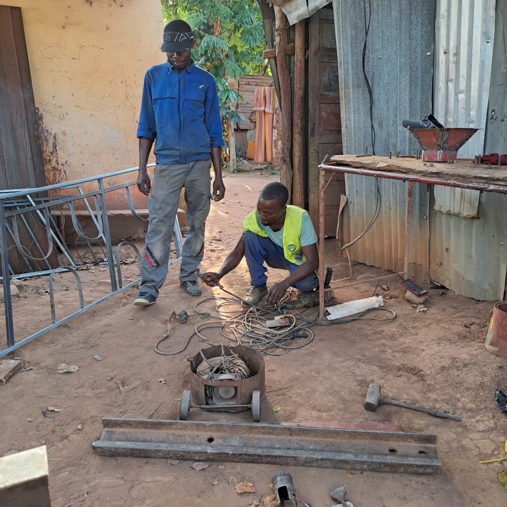 Gleich nebenan haben 2 ehemalige Lehrlinge eine Schlosserei gegründet. Sie haben gemeinsam im ABCN gelernt und sich dann 2018 zusammen selbstständig gemacht. Gerade fertigen sie ein Treppengeländer für eine Schule.