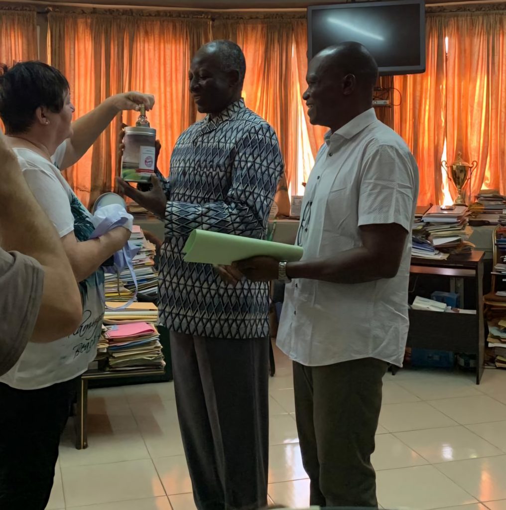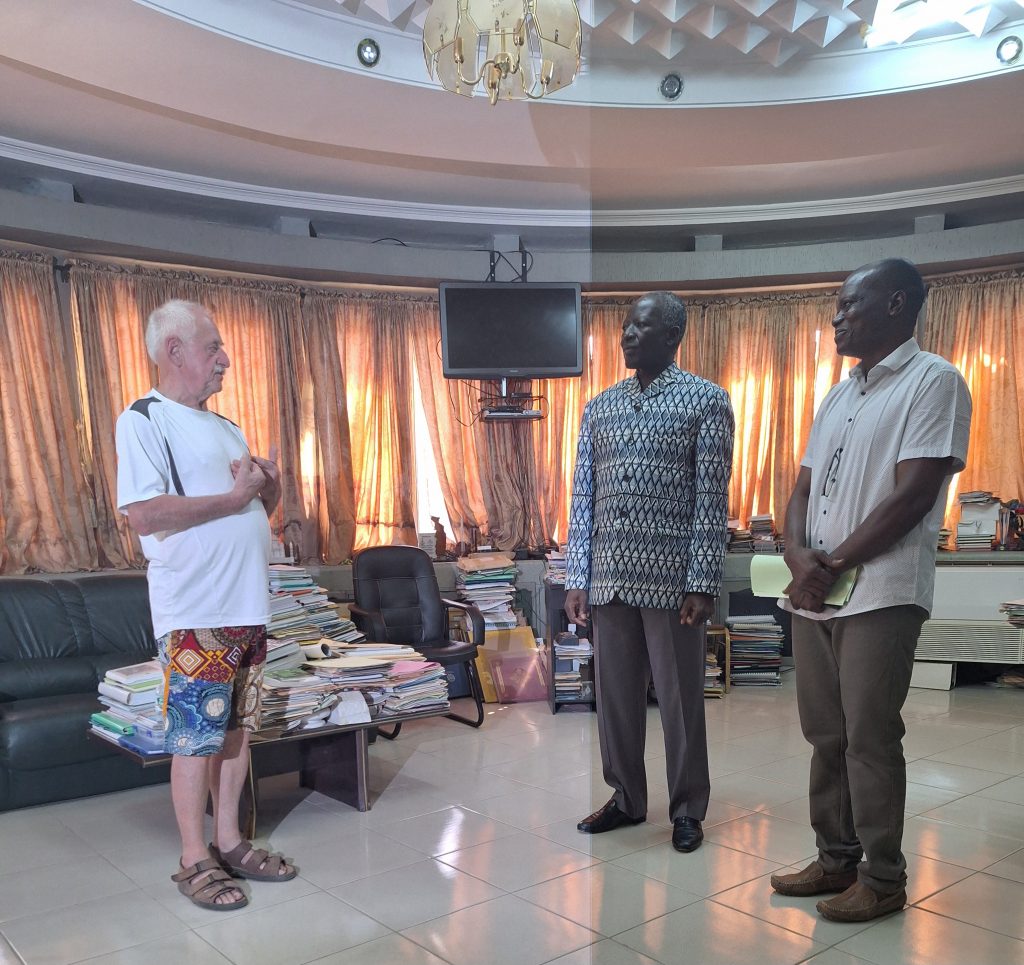 Vor der Präfektur erwartet uns schon Tata Padabo Kelem und begleitet uns ins Büro des Präfekten. Er empfängt uns wieder in seinem Büro, in dem sich, wie schon im März, zu Hauf die Akten stapeln.