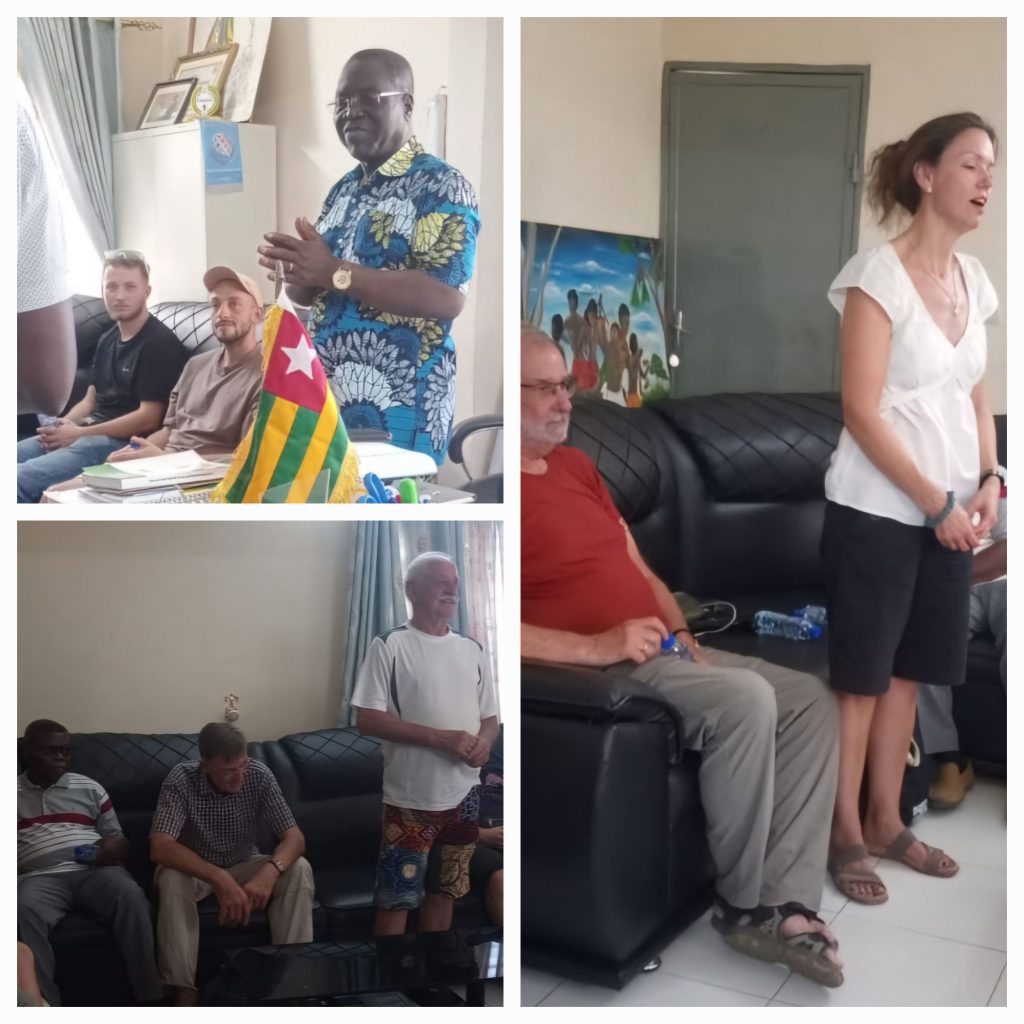 Auch der Bürgermeister begrüßt uns sehr herzlich und erinnert sich noch gut an unseren Besuch im März. Wie schon der Präfekt dankt er herzlich, dass wir den weiten Weg in den Norden gefahren sind um den Menschen in einer der ärmsten Regionen Togos zu helfen und auch er sichert uns zu alles in seiner Macht stehende zu tun um zum Gelingen des Projektes bei zu tragen. Auch hier singt Kerstin zur Freude aller ein Lied.