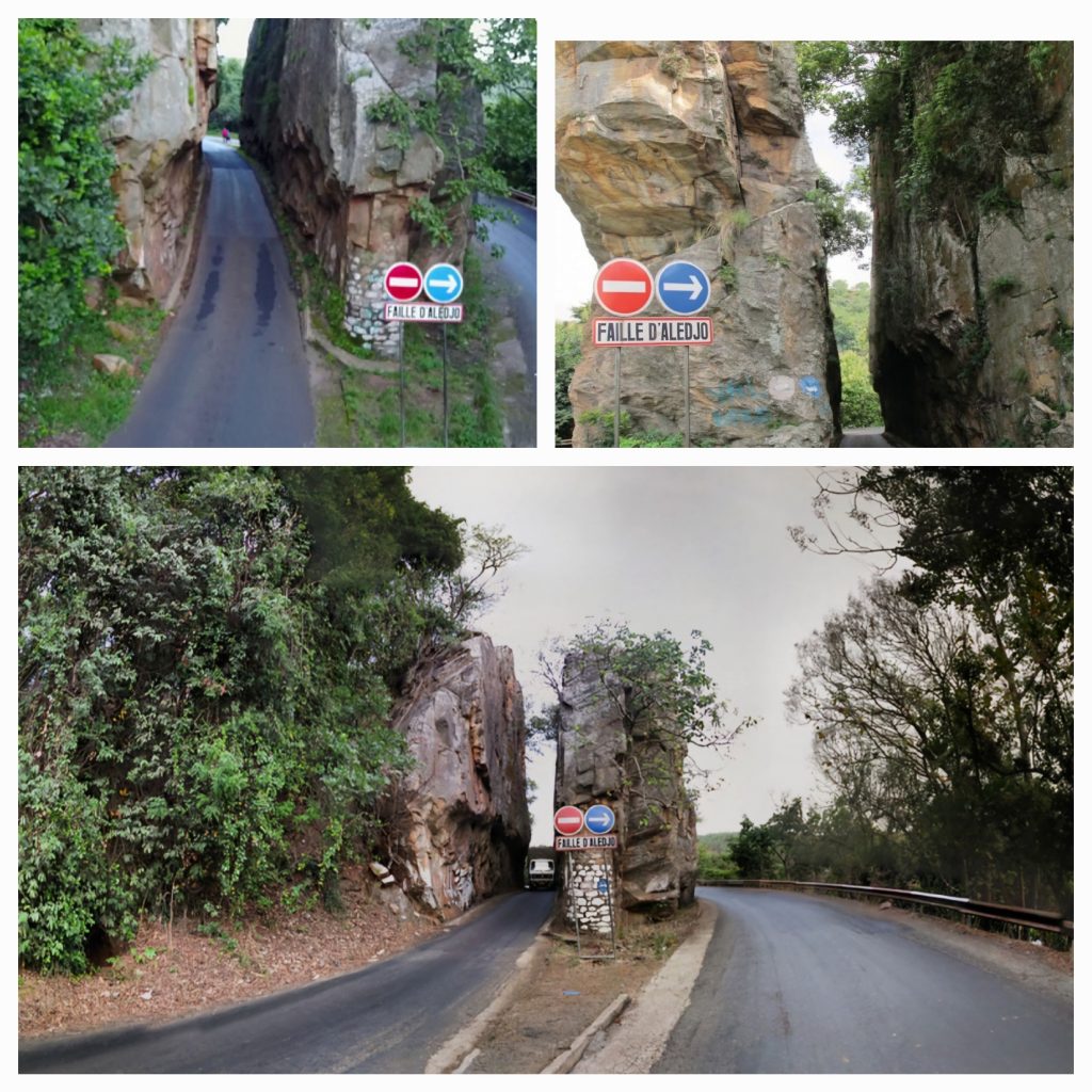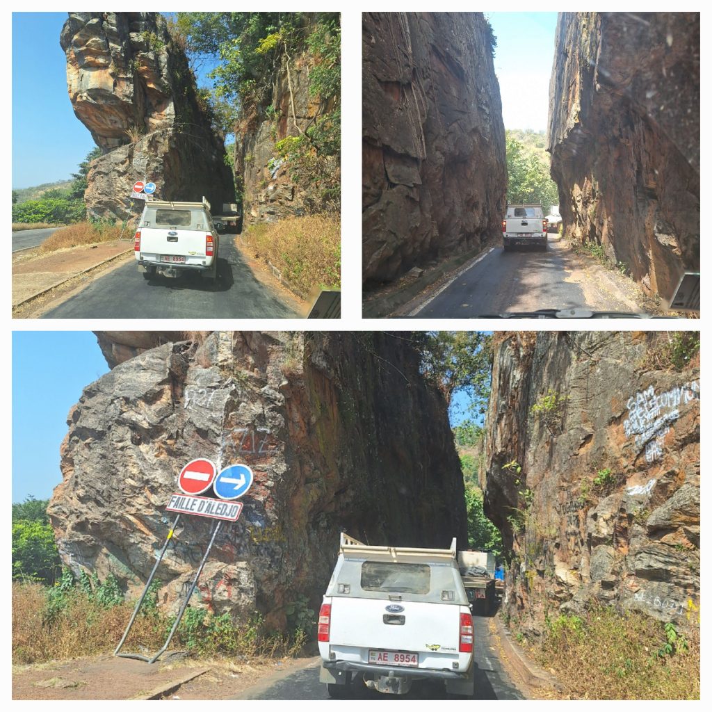 Eine Zeitlang fahren wir auf der alten Strecke, dort ist die Straße zwar schlechter, aber wir haben nicht so viele LKW’s vor uns und kommen auch durch das Faille d’Aledjo – ein Straßenstück, dass durch eine große Felsspalte führt und vor dem 1. Weltkrieg von deutschen Soldaten erbaut wurde. Die äußere Fahrbahn, auf der man bergaufwärts fährt, wurde erst Jahrzehnte später gebaut.