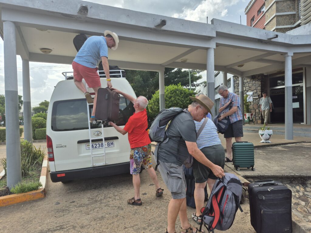 Donnerstag 13.11.2025 … nach einer nicht gerade erholsamen Nacht, starten wir heute schon sehr früh in den neuen Tag. Pünktlich um 6.00 Uhr fahren wir los. Die Koffer haben wir schon am Abend gepackt. Wir müssen in unserem Kühlschrank im Büro nur noch unsere Kühlbox mit der Verpflegung holen. Als wir los gefahren sind, war es gerade hell geworden. Auf der Straße ist schon einiges los. Marktstände werden aufgebaut und viele Schüler sind schon auf dem Weg in die Schule. Vor allem viele Mopeds sind unterwegs und später dann auch viele LKW’s.