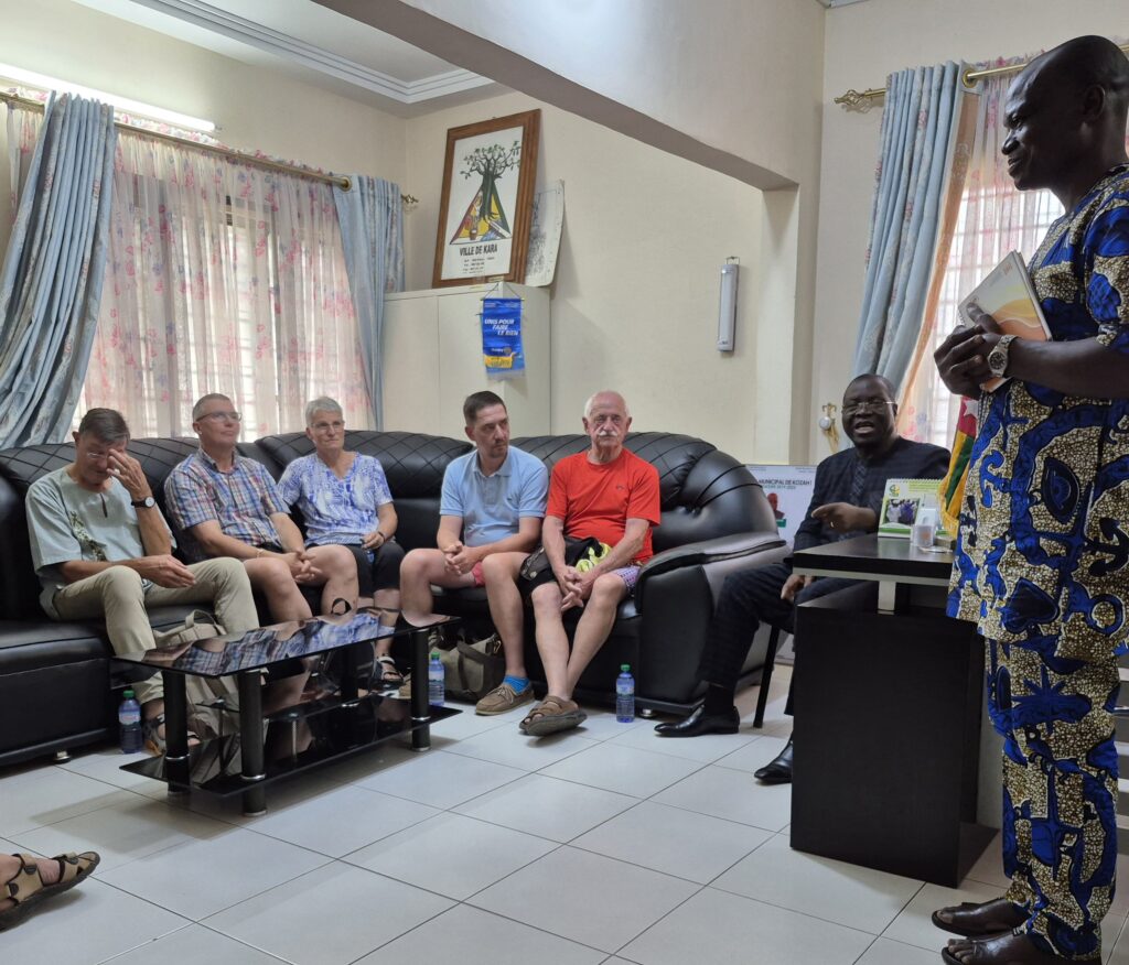 Heute ist sein letzter Arbeitstag und es ist ihm sehr wichtig, dass er sich noch bei uns bedanken kann, denn er war von Beginn an in die Planung und den Baustart des Ausbildungszentrum in Kara eingebunden und hat sich auch um den Strom- und Wasseranschluß für das Grundstück gekümmert. Bevor wir uns verabschieden machen wir noch ein Gruppenfoto, dass leider nicht so gut gelungen ist.