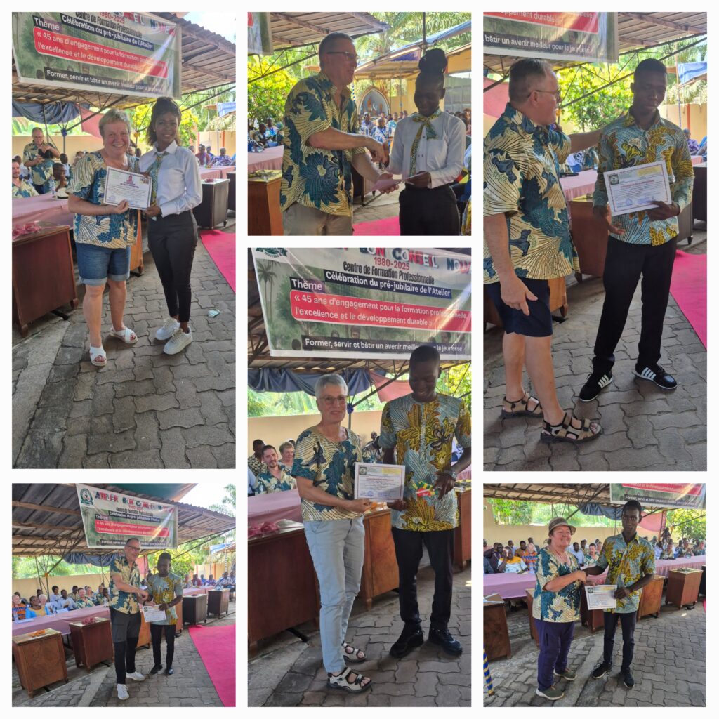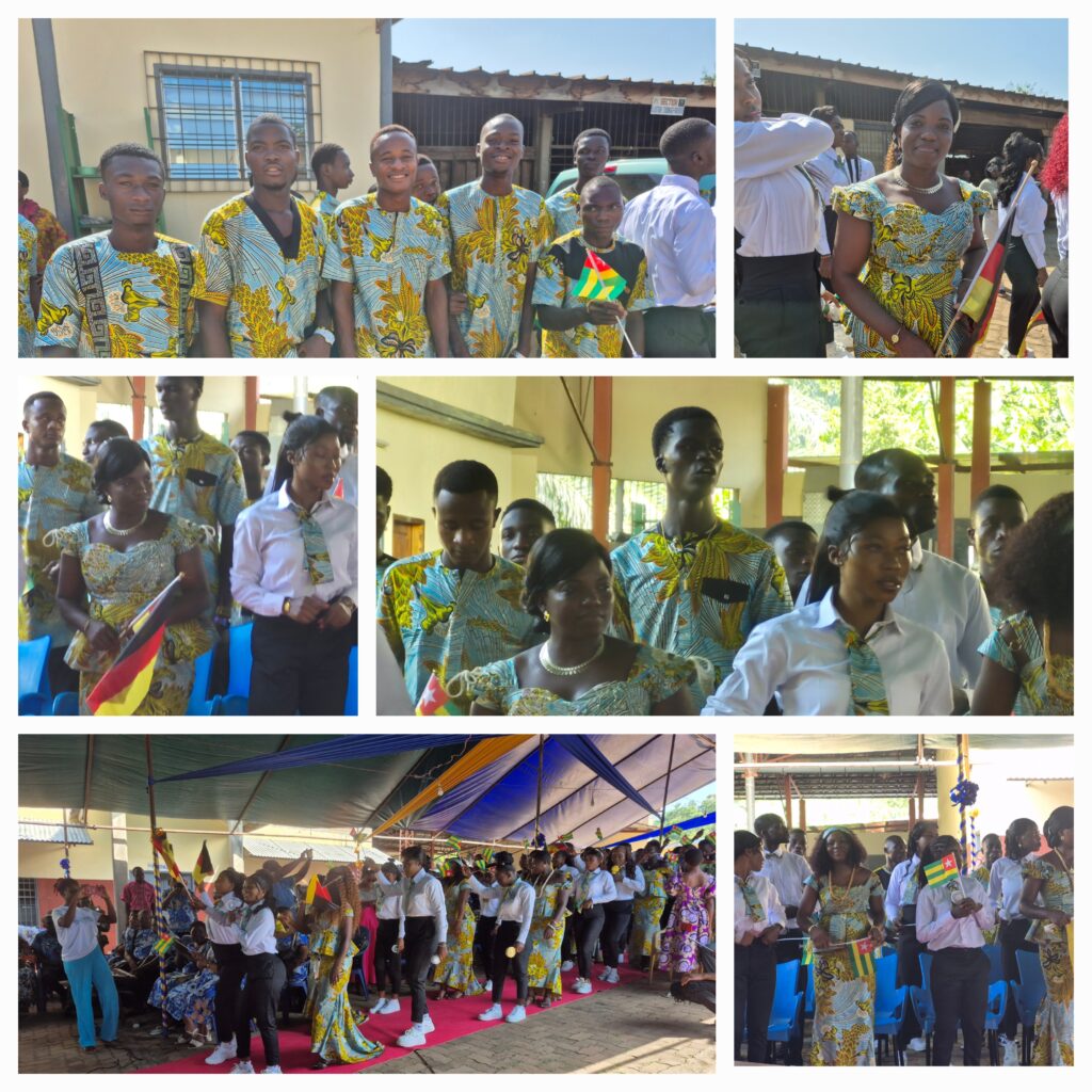 Eröffnet wird die Feier vom Pfarrer mit einem Gebet und dann werden die togoische und die deutsche Nationalhymne gesungen. In vielen Reden werden den Jugendliche gute Ratschläge mitgegeben und auch viele Dankesworte gesprochen.