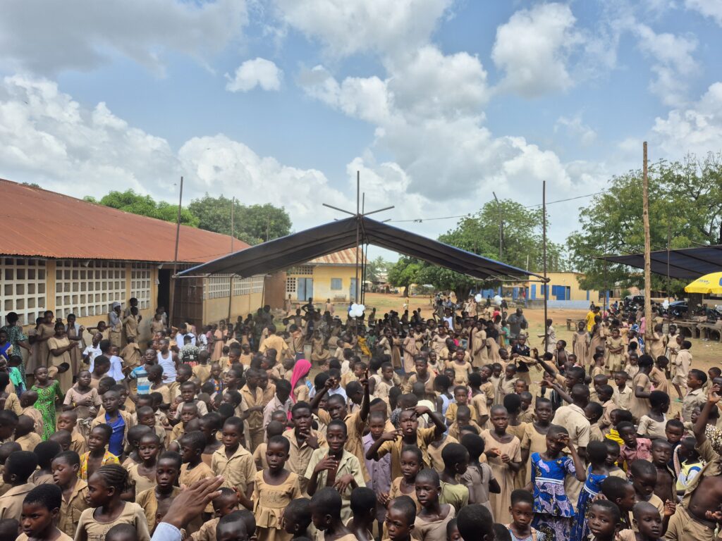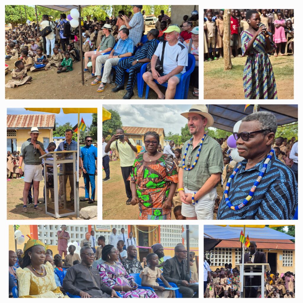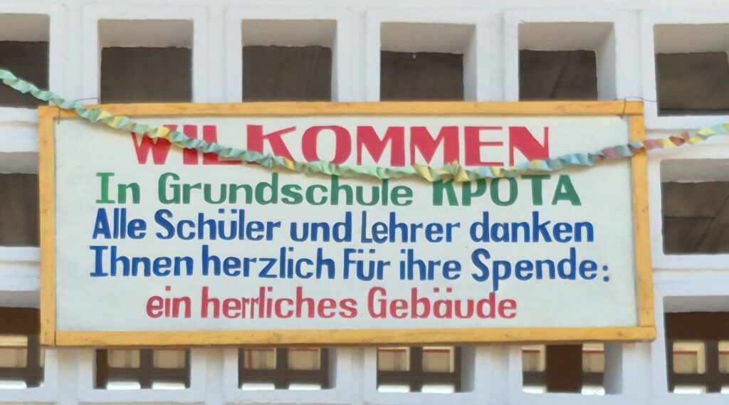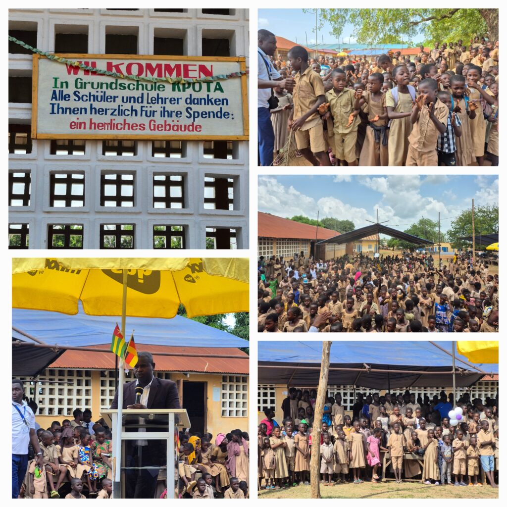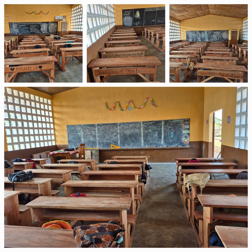 Der 1. Halt ist bei einer Primärschule. Im Frühjahr wurde das 1. Gebäude mit 3 Klassenräumen eingeweiht. Es wurde über das Projekt „1000 Schulen für unsere Welt“ von einem privaten Sponsor und Hilfe für Togo finanziert. Heute wird ein 2. Gebäude in der gleichen Größe eingeweiht. Es wurde ebenfalls von einer privaten Sponsorin und Hilfe für Togo e. V. finanziert.