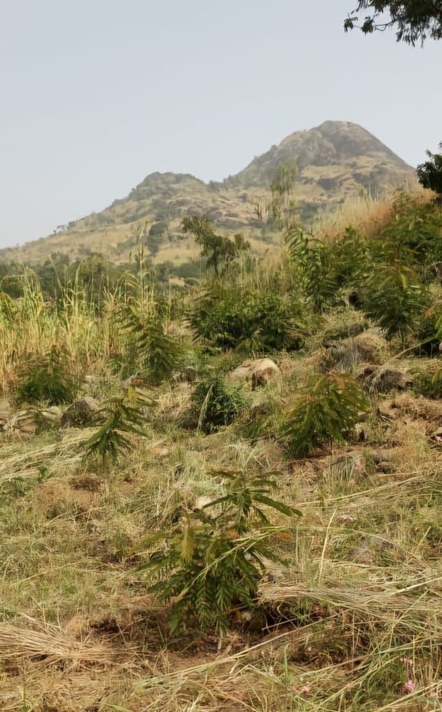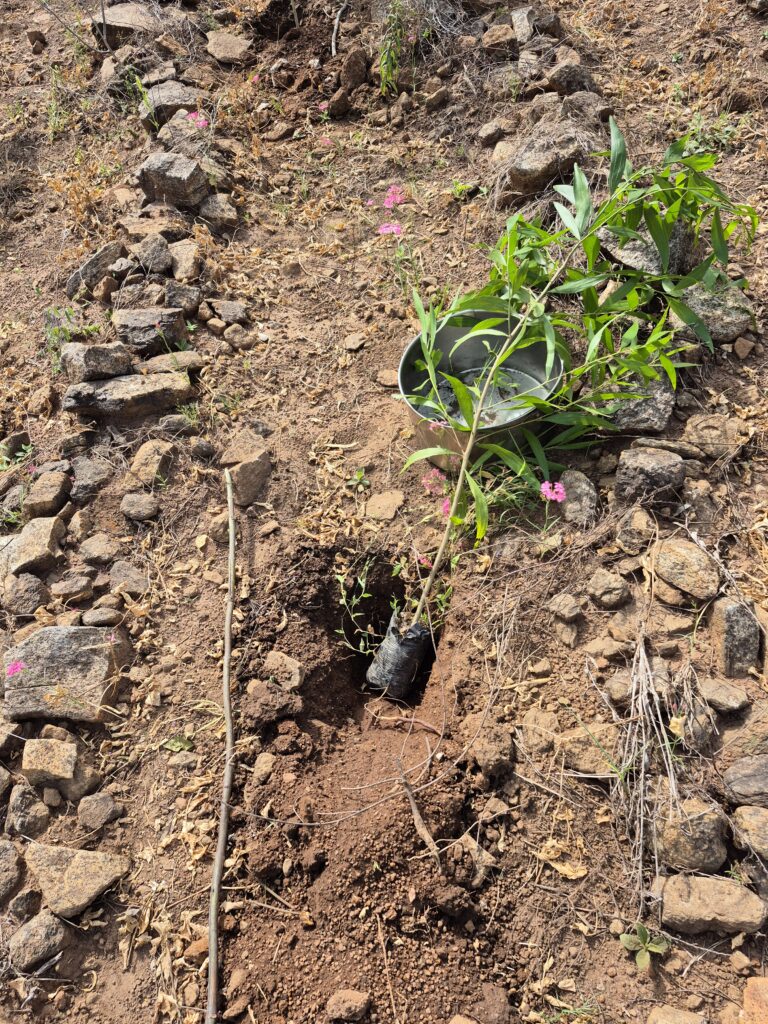 Es ist unglaublich, was die Leute da leisten. Über 10 ha sind inzwischen schon bepflanzt. Auch wir werden heute Bäume pflanzen. Doch dafür müssen wir erst mal den Berg erklimmen und das ist bei der Hitze ganz schön anstrengend.