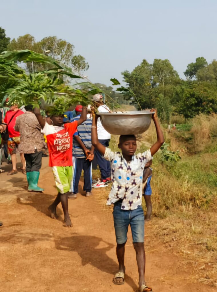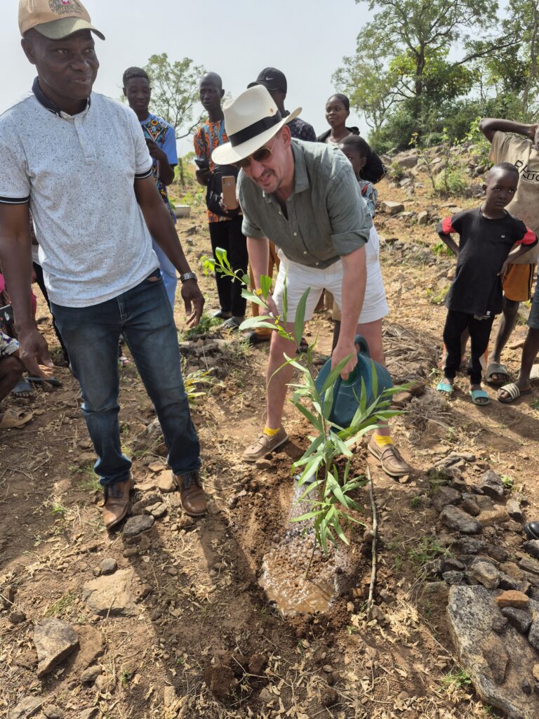 Die Dorfbewohner freuen sich sehr, dass wir da sind und ihr Projekt der Aufforstung unterstützen. Die Kinder finden es unheimlich witzig, dass die „Jovos“ auch Bäume pflanzen können. „Jovo“ stammt aus der Ewe Sprache und die Weißen werden von den Togoern so genannt. Übersetzt heißt das “ kleines rosarotes Schweinchen“…