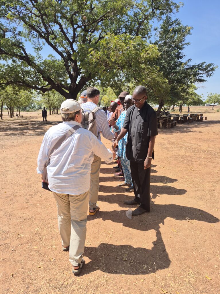 Endlich …es ist geschafft, kurz nach 11.00 Uhr treffen wir an der Schule ein. Zunächst werden wir vom Dorfchef, Eltern, Lehrer usw. empfangen und in einer langen Schlange jeder persönlich per Handschlag begrüßt.