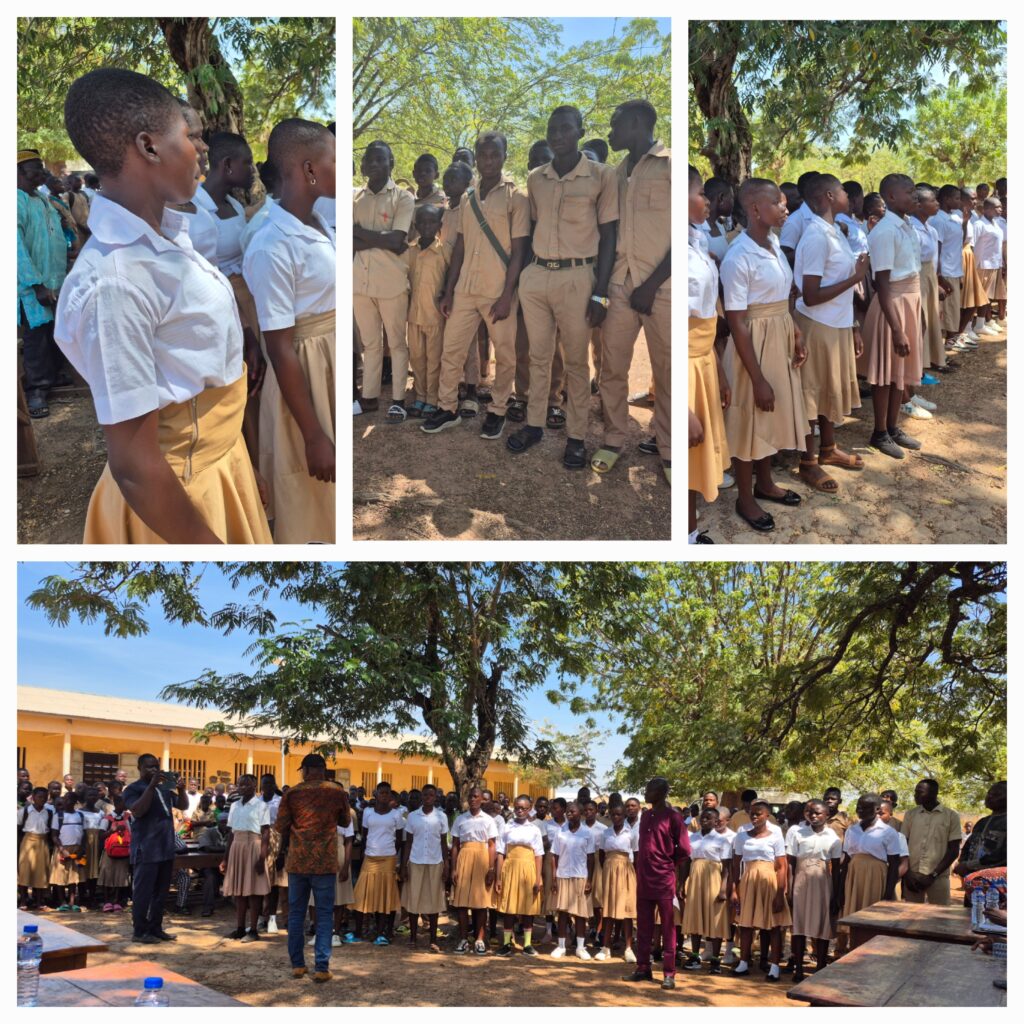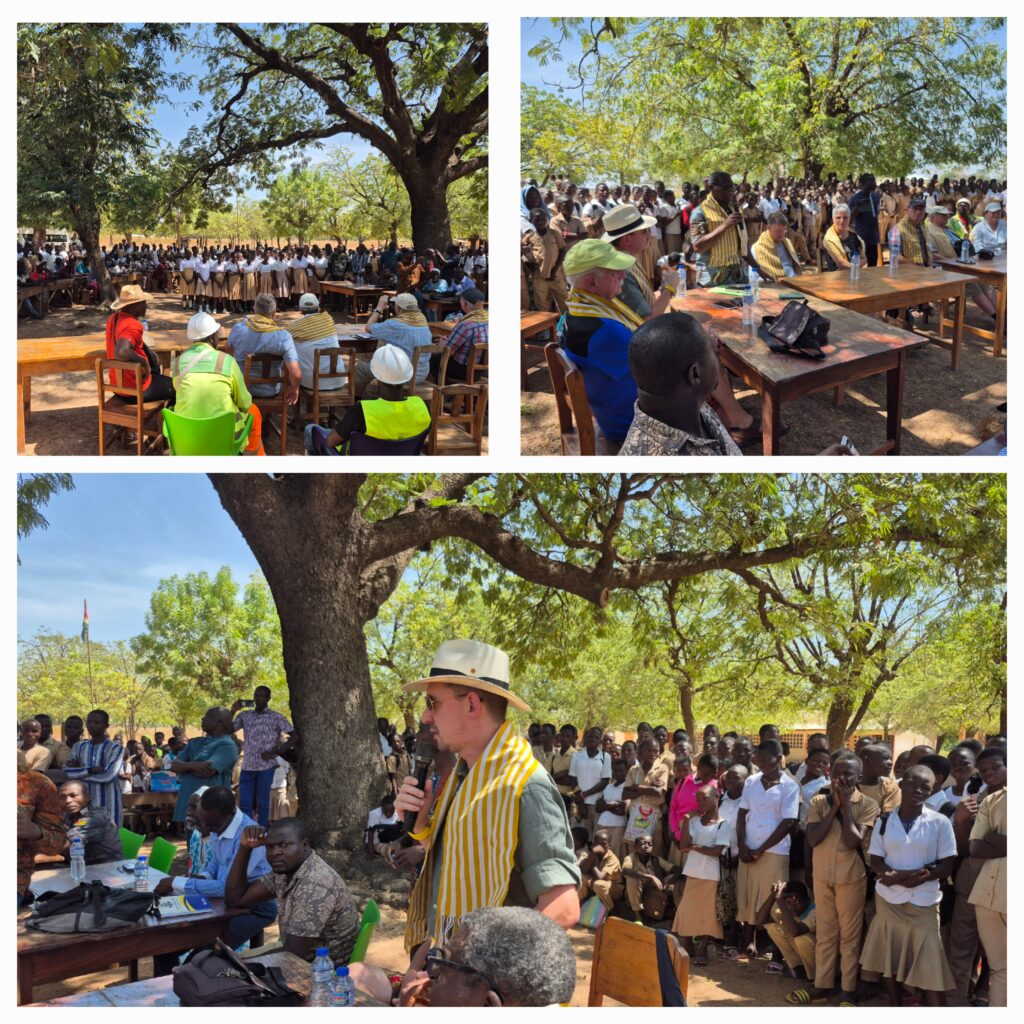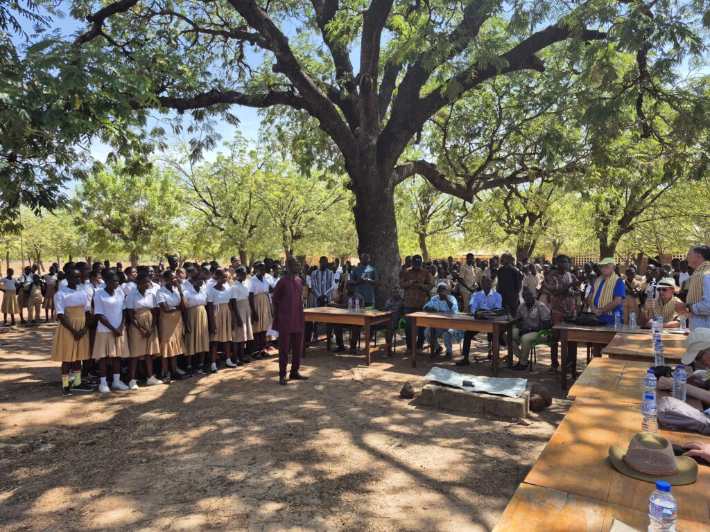 Nach einem kurzen Grußwort, bei dem wir alle einen Schaal überreicht bekommen und zu Ehrenbürgern von Nagbeni ernannt werden, singt der Schulchor die togoische und ..für uns immer sehr ergreifend die deutsche Nationalhymne.