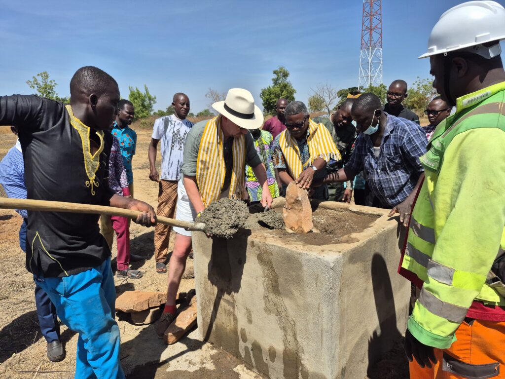 In der Nähe der Baustelle ist ein Fluß, von dort können die Leute aus dem Dorf das Wasser zur Baustelle tragen. Was natürlich sehr praktisch ist, denn das Wasser ist oft ein Problem. Die Bevölkerung muss eine Eigenleistung in Höhe von 5% der Gesamtsumme erbringen…z.B. mit dem Wassertransport, dem ausgraben der Fundamente usw.