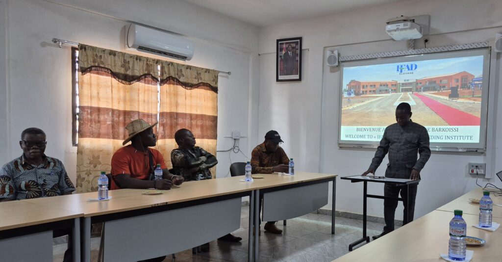 Unser nächstes Ziel ist „IFAD ELEVAGE de BARKOISSE“ ein landwirtschaftliches Ausbildungszentrum in der Nähe von Mango (in der Savanne 41.000 Einwohner). Der Direktor des Zentrums führt uns mit einer Präsentation in das Zentrum ein.
