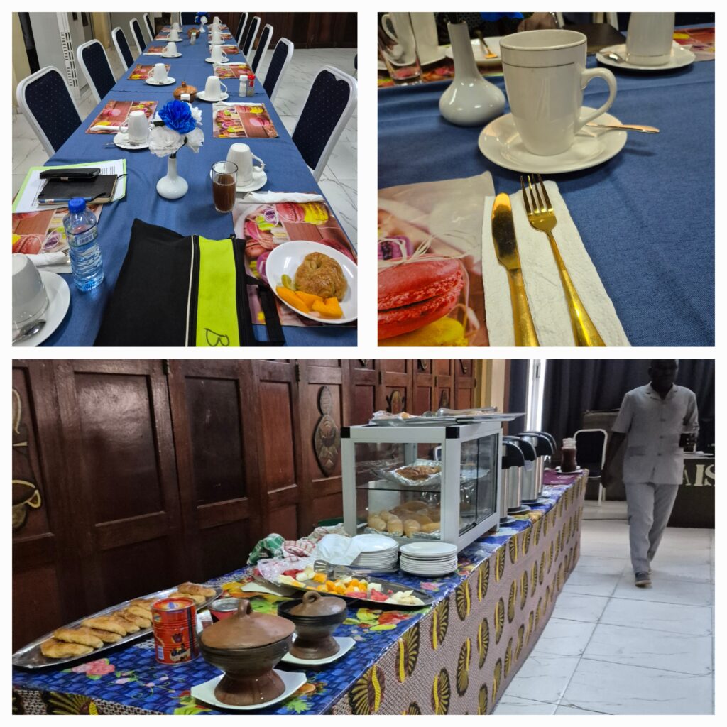 Freitag, 14.11.2025 …schon um 6.30 Uhr starten wir mit einem leckeren Frühstück im Hotel. Es gibt leckere Säfte in großer Auswahl – Tamarind, Ananas, Orange, Bisap…Omlett. Weißbrot und Früchte…dazu unsere mitgebrachten Leckereien Wurst, Käse und Vollkornbrot …perfekter Start in einen anstrengenden Tag.