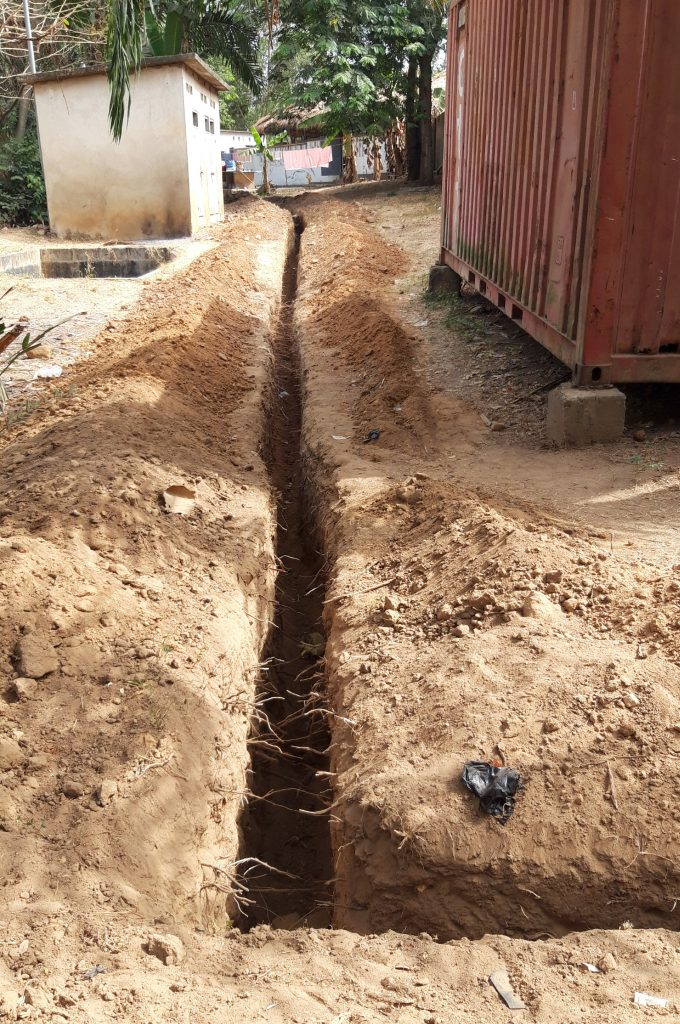 Von der Hauptstrasse her, die am ABCN vorbeiführt, wurden die Gräben für die Wasserleitung gegraben.