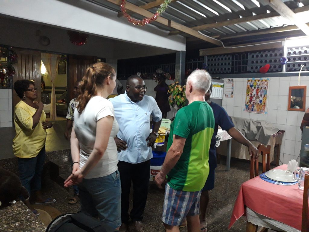 Am Abend sind wir dann zur Geburtstagsfeier bei Victorine eingeladen. Es ist ein wunderschöner Abend mit tollem Essen und vielen netten Gästen. Sogar der Kirchenchor ist gekommen und umrahmt den Abend mit vielen afrikanischen Liedern, zu denen dann auch getanzt wird.