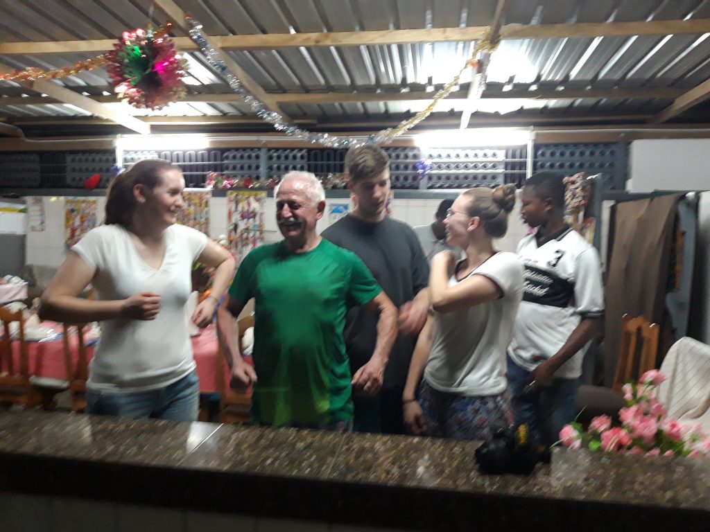 Unser nächster Termin ist eine Überraschung für Victorine, die heute Geburtstag hat. Sie ist überwältig und freut sich gemeinsam mit den Bewohnern in ihrem Haus über unser Geburtstagslied und kleine Geschenke.