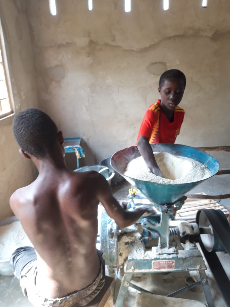 Die Maismühle der Frauengruppe, die vor einigen Jahren von den Lions in Aalen gesponsert wurde funktioniert hervorragend.