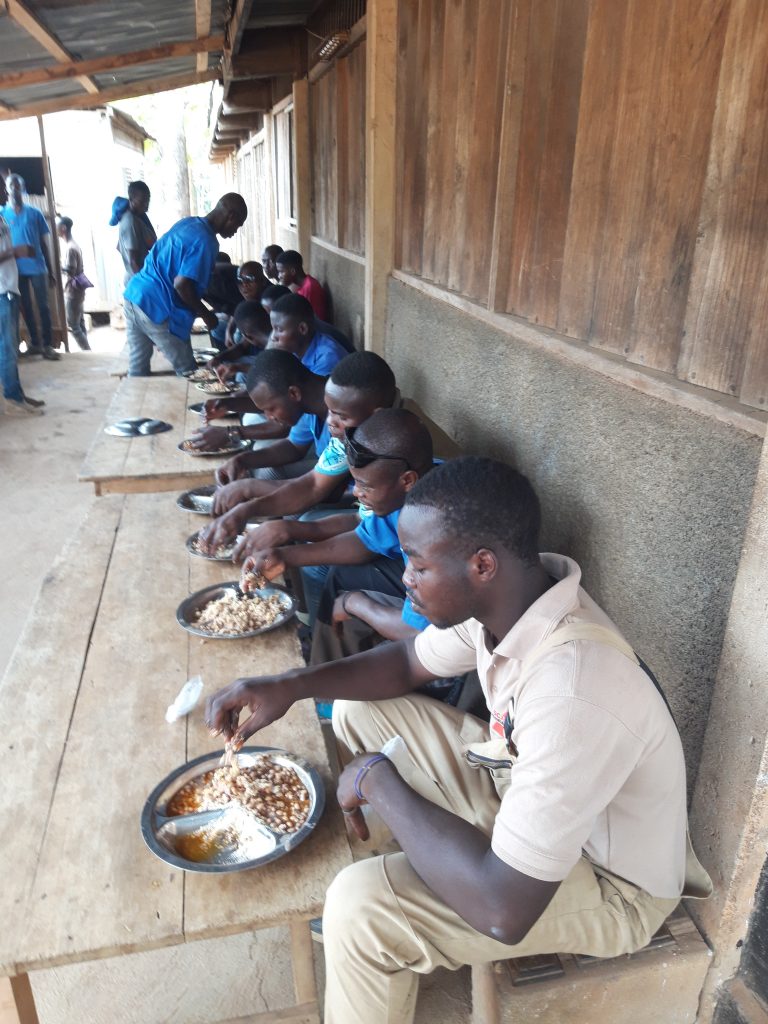 Pünktlich zum Mittagessen der Auszubildenden sind wir wieder im ABCN. Gerade wird das Essen ausgegeben. Seit vielen Jahren finanzieren wir über Hilfe für Togo täglich ein warmes Mittagessen für alle Azubis. Für manche die einzige Mahlzeit am Tag.