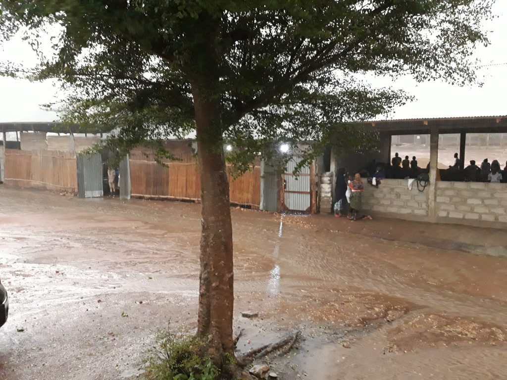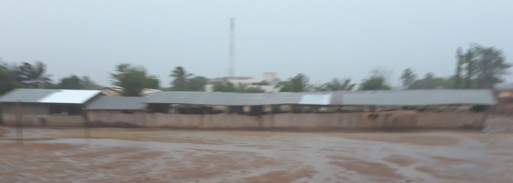 In den Apatams, wie man die einfachen Schulhütten nennt und auf dem Gelände ware schon alles unter Wasser. Im Büro der Rektorin versteht man sein eigenes Wort nicht. Die ca.1200 Schulkinder machen ein Freudengeschrei wegen des Regens und das prasseln auf den Blechdächern ist ungeheuerlich laut. Nach einer kurzen Diskussion vertagen wir den Termin deshalb auf einen der nächsten Tage.