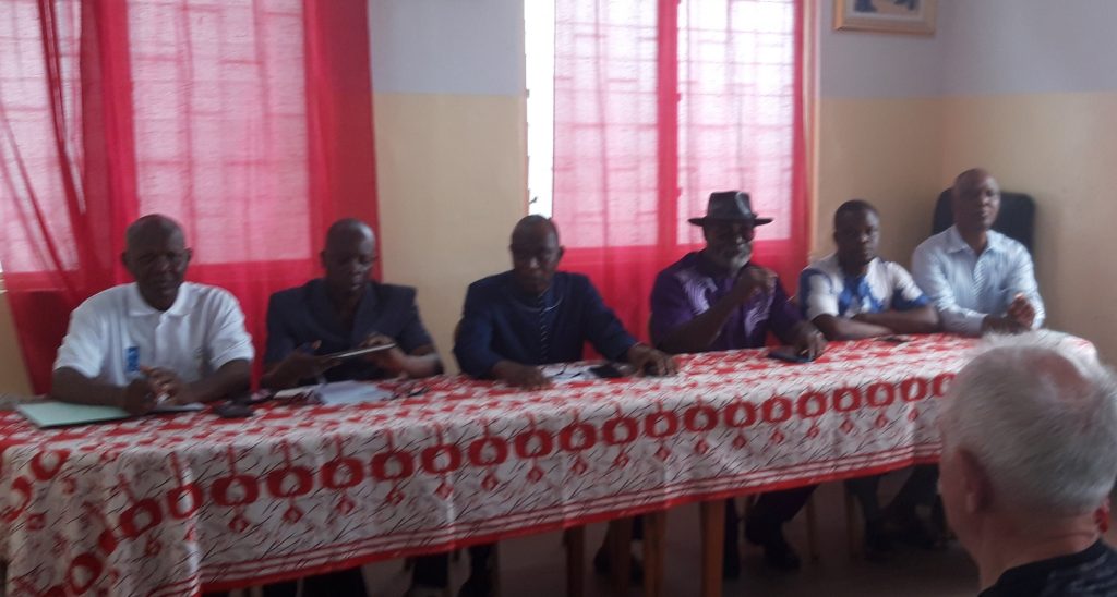 Gleich danach haben wir in der Präfektur – zu vergleichen mit unserem Landratsamt – einen Termin. Der Präfekt ist ein agiler, sehr aktiver und Bürger naher Mann, der stets den kurzen Dienstweg geht. Wir sprechen mit ihm unter anderem auch über das Jugendprojekt und den Schulbau in Kpeta. Er führt sofort mehrere Telefongespräche, die uns teilweise richtig zum schmunzeln bringen. Obwohl wir bei seinem Tempo nicht alles verstehen, kommt klar rüber, dass er Klartext spricht. Von Sina haben wir inzwischen die Nachricht erhalten, dass Bengo den Beginn des Schulbaus in Kpeta genehmigt hat.