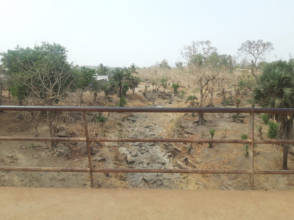 Anschließend starten wir zu unserer Tour. Schon am Morgen haben wir 35°C und am Nachmittag werden es 42°C – es wird also ein heißer Tag. Zunächst fahren wir 28 km nach Kpindi, an der Grenze zu Benin. Eigentlich nicht weit – doch bei den Straßenverhältnissen fast eine Tortour.