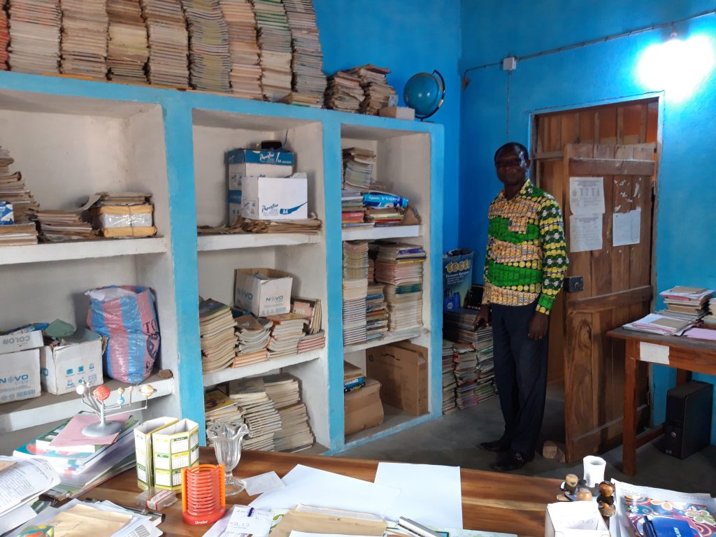 Auf dem Gelände befindet sich auch ein Kindergarten und eine Primärschule. Die Kindergärten in Togo haben den Charakter einer Vorschule, dort lernen die Kinder französisch, da zu Hause in den Stammessprachen wie z.B. Ewe oder Kapie gesprochen wird. Im Kiga und der Primärschule sind es etwa 300 Kinder. Für alle Schüler und Lehrkräfte gibt es weder eine Wasserversorgung noch Toiletten. Auch hier ist unserer Meinung nach der Bau einer Schule absolut wichtig. Genau wie am Morgen in der katholischen Schule wird großen Wert auf einen guten Unterricht und einen guten Schulabschluss gelegt. Daher wird versucht, dass die Klassenstärke 50 Schüler nicht übersteigt, was aber zur Folge hat, dass das Schulgeld etwas höher ist als an anderen Schulen. Auch auf das soziale Miteinander wird sehr viel Wert gelegt. Für ein Mädchen das vor einiger Zeit ein Kind bekommen hat wurde am Kindergarten ein Platz zur Verfügung gestellt, damit sie weiter den Unterricht besuchen kann. Wir haben das erste Mal so richtig den Eindruck, dass den Lehrkräften hier an der Schule auch die Mädchen sehr wichtig sind. So wurde z.B. ein kleines Bauwerk erstellt, das ihnen als Umkleidekabiene für den Sportunterricht dient. Das Gelände um die Schulgebäude, die Klassenräume und vor allem das Magazin und das Lehrerzimmer sind sehr ordentlich und sauber.