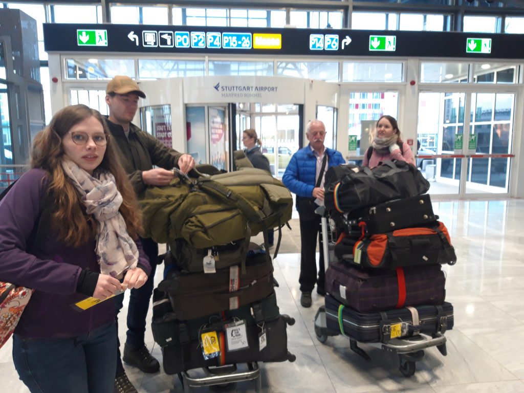 Freitag 28.2.2020 – die Koffer sind gepackt und wie immer holt Manfred die Reisegruppe auf dem Schlatthof ab. Wir sind zu fünft Leonie Barth und Kai Meier, Marie Seidling, Done und ich.
