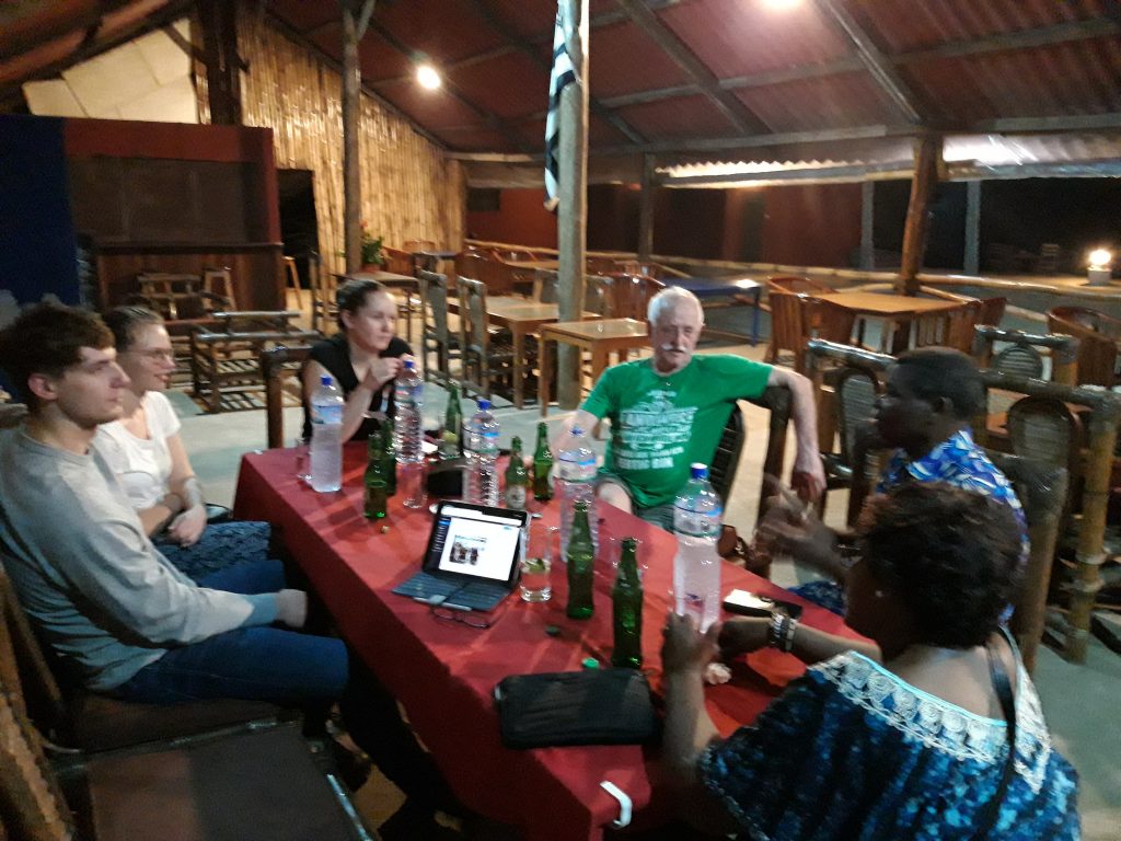 Es läuft gut und so sind wir zeitig in Stuttgart. Ruck zuck sind wir eingecheckt und es bleibt noch Zeit für eine Tasse Kaffee und eine letzte Butterbrezel. In Paris haben wir dann einen längeren Aufenthalt und mit Verspätung starten wir erst kurz nach 16.00 Uhr. Ein nagelneuer Flieger mit sehr aufmerksamem Personal sorgt für einen angenehmen Flug. Pünktlich um 21.30 Uhr landen wir in Lome und ohne Probleme kommen wir durch den Zoll.Victorin und Leon, Holali und Simeon holen uns mit 2 Autos ab und wir fahren gleich ins Hotel Robinson Plage bei kühlen Getränken genießen wir die tropischen Temperaturen und lassen den Tag ausklingen.