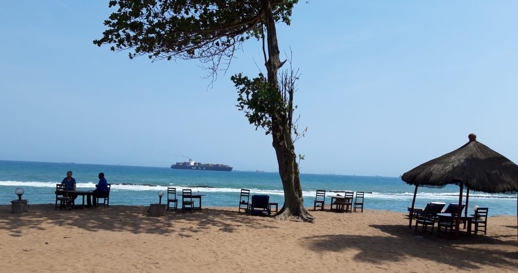 Im Restaurant des Hotel Robinson Plage haben wir mit Leon noch einiges zu besprechen. Endlich haben wir auch wieder digitalen Anschluß an die Außenwelt und erfahren was zu Hause so abgeht. Bei diesen Nachrichten würden wir doch am liebsten in Togo bleiben. Ich versuche so gut es geht unseren Blog fertig zu stellen und ein letztes Mal genießen wir den herrlichen Strand vor der Hotelanlage.